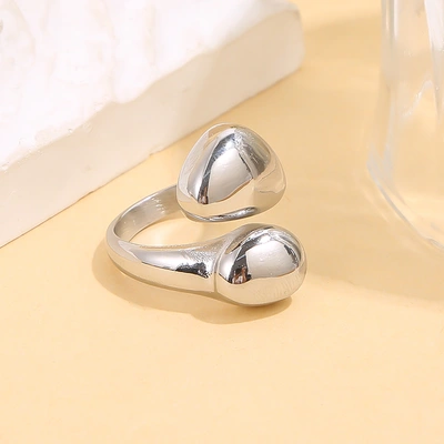Bague argentée, ouverte forme arrondie, galbée, effet miroir