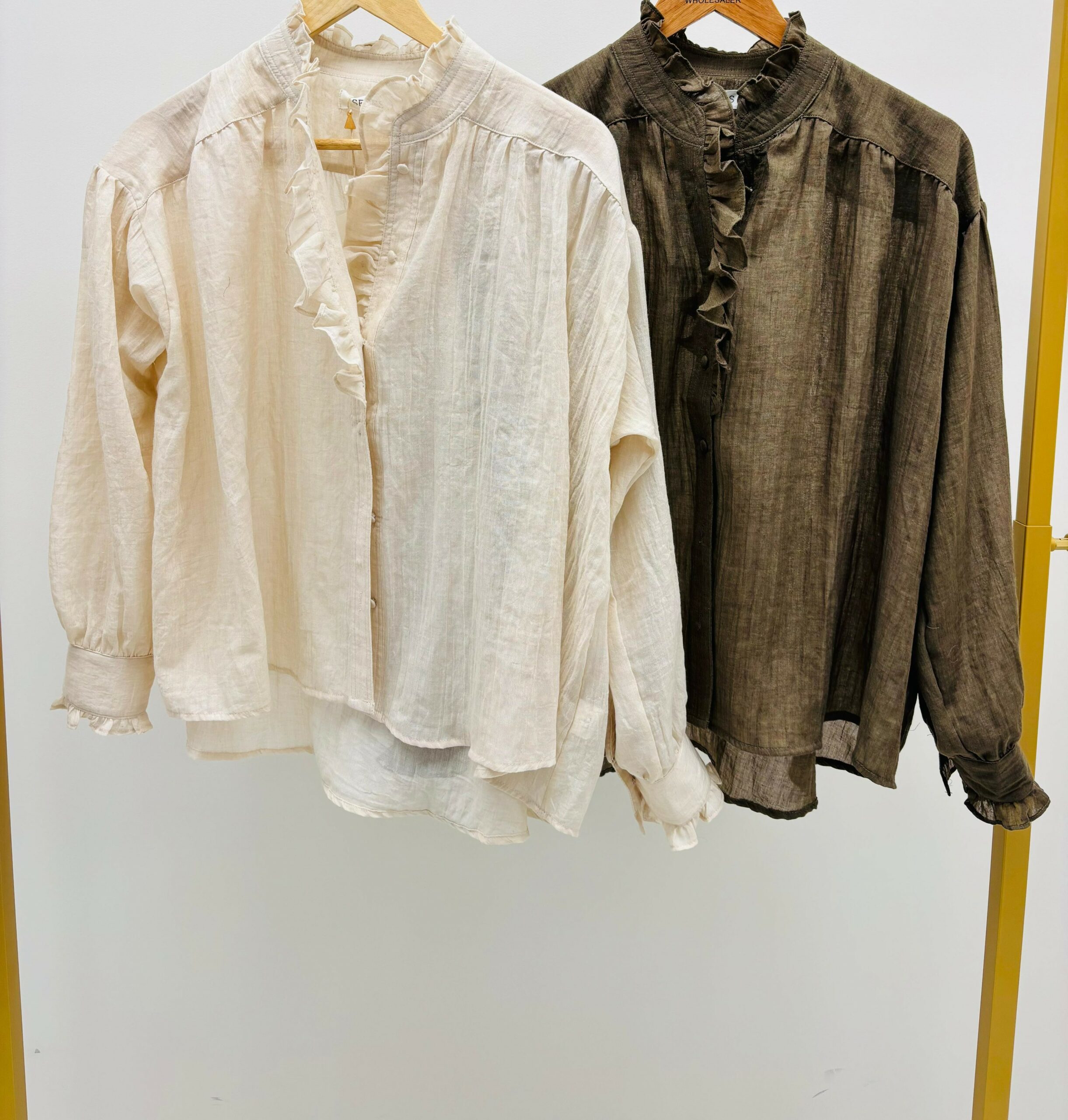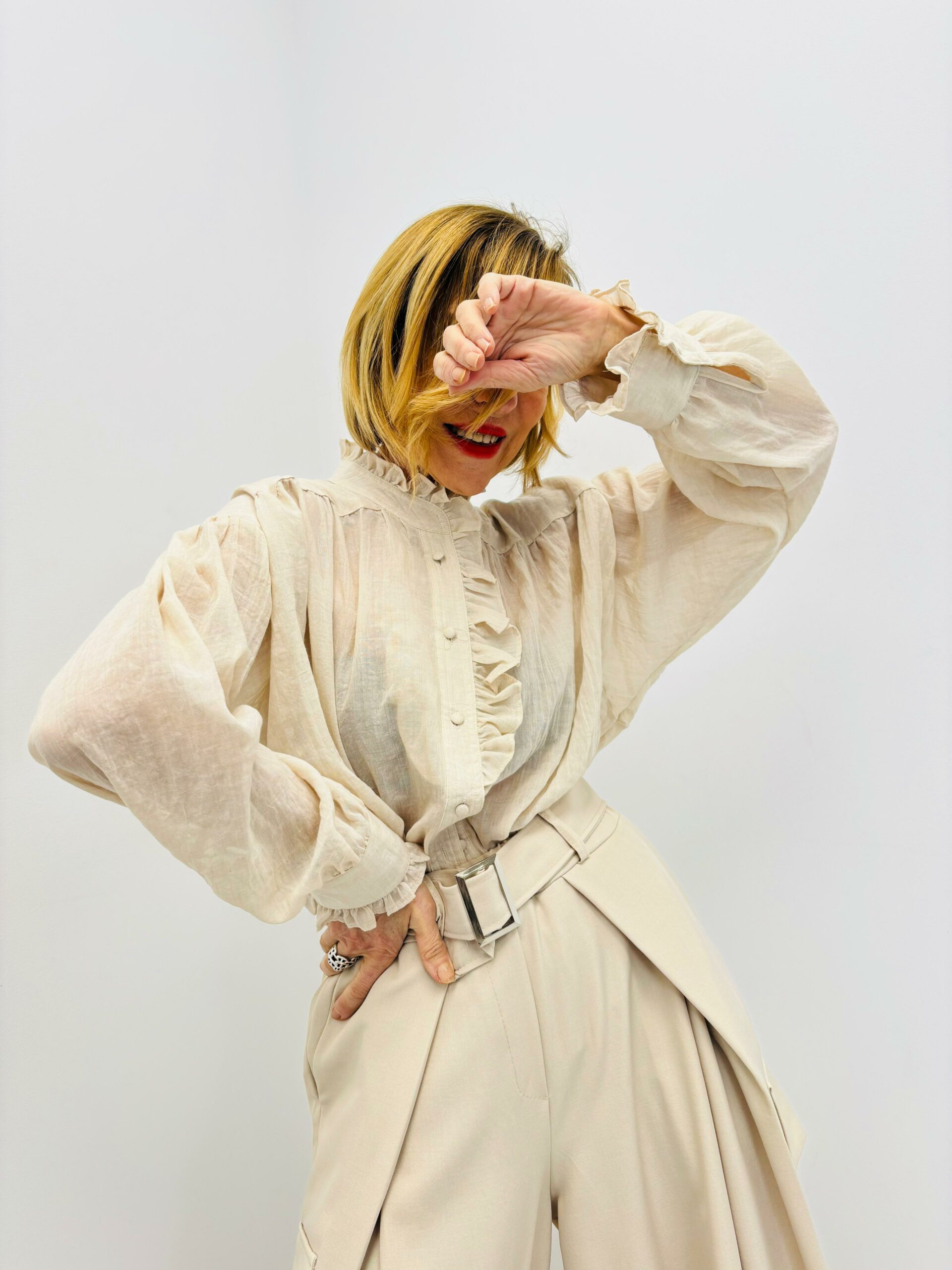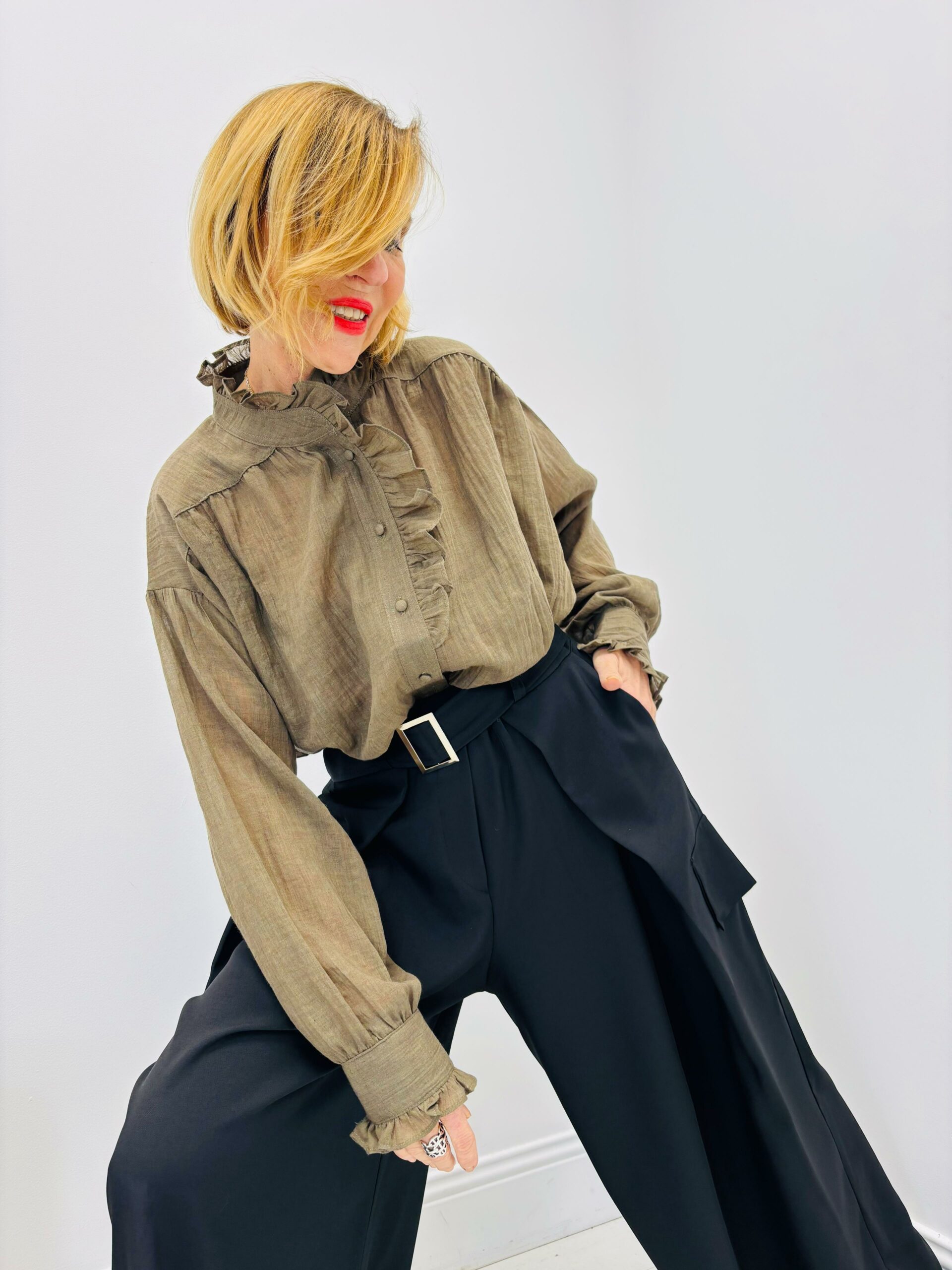 Blouse unie, légère, fluide, boutonnée, col Victorien