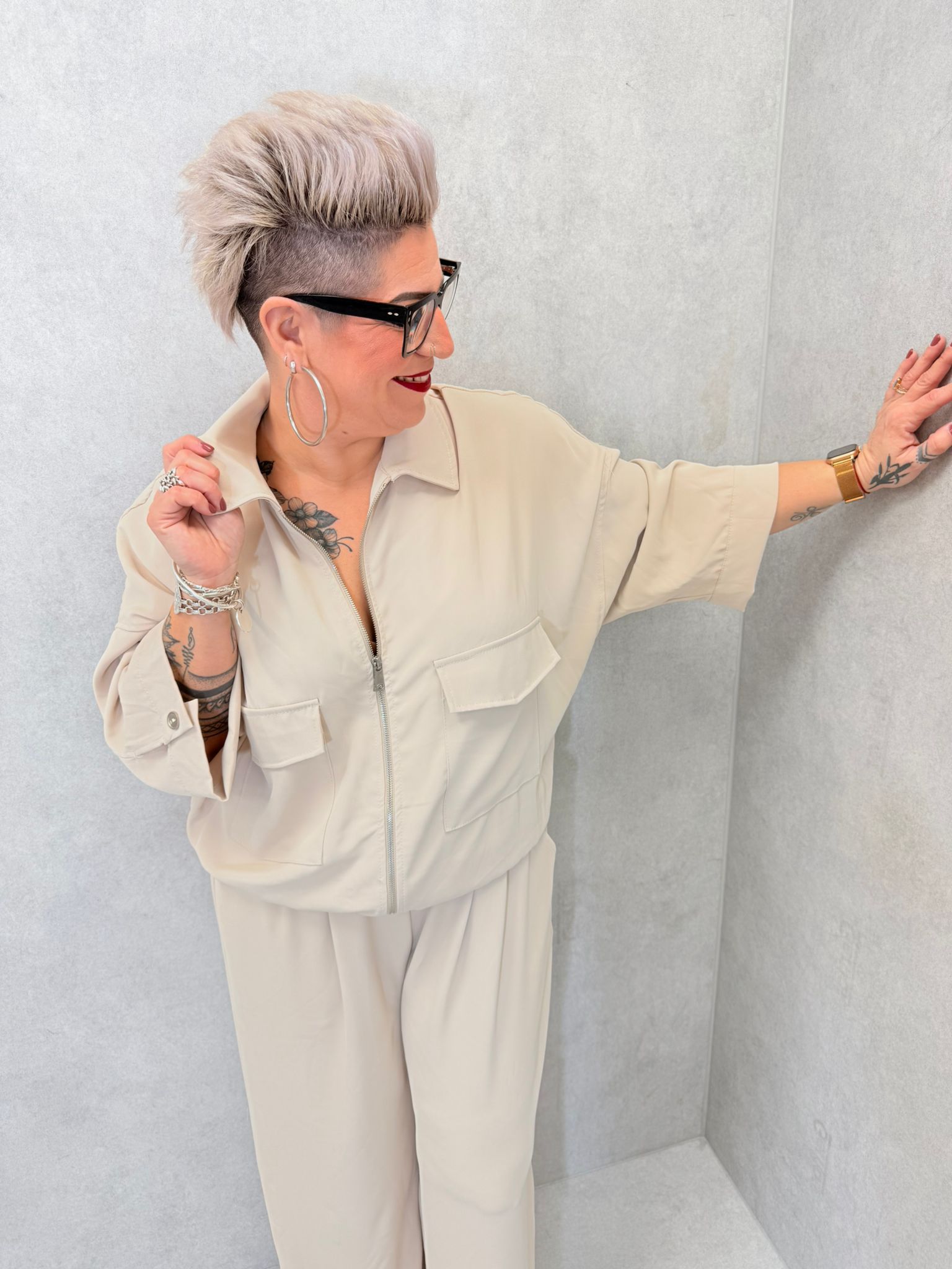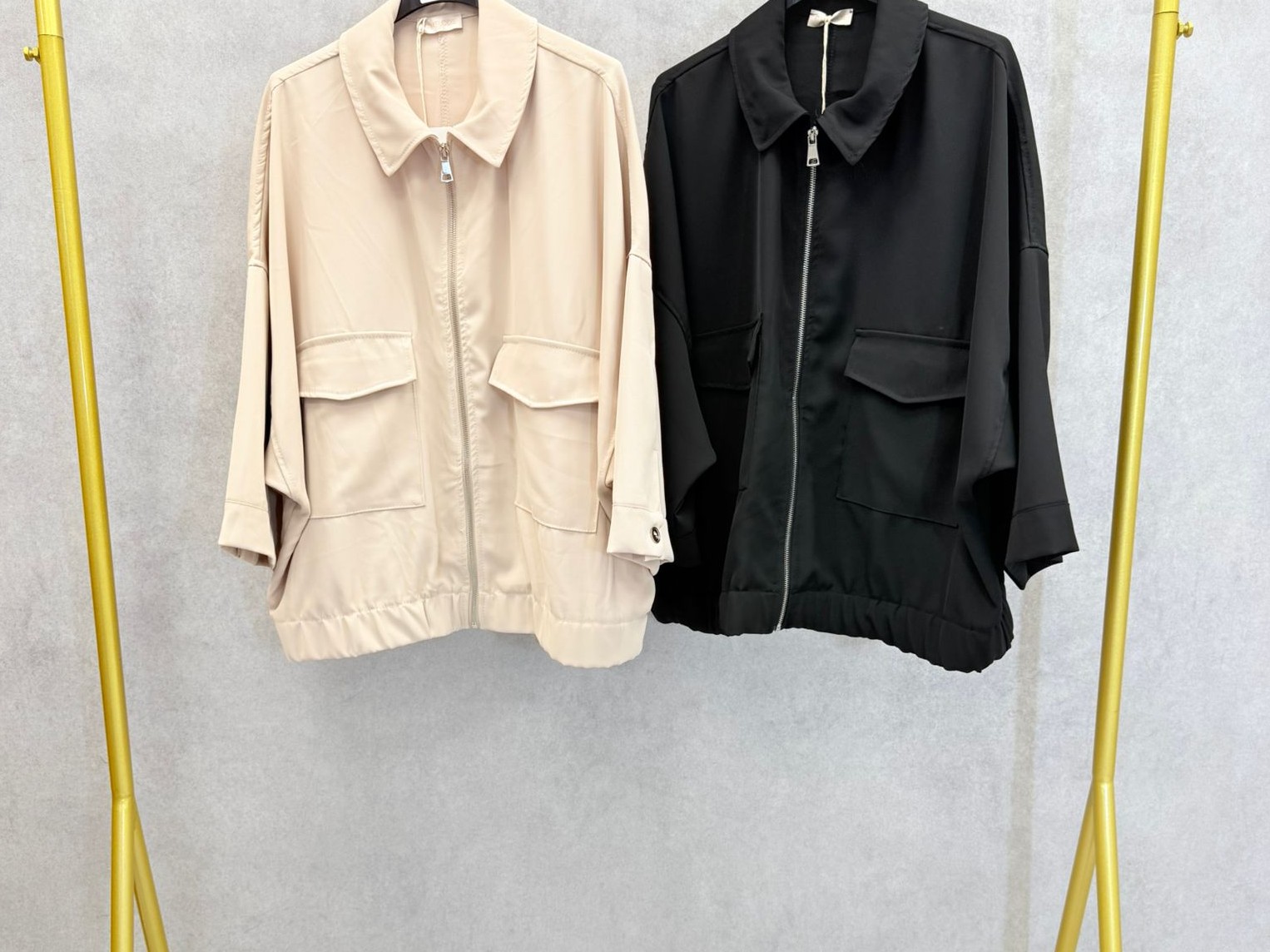 Blouson sable, zippé, poches, élastiqué dans le bas