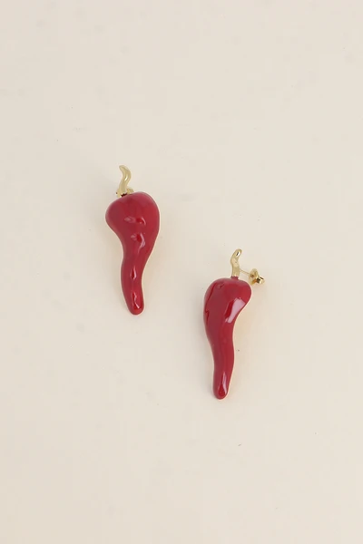 Boucles d’oreilles à puce en acier inoxydable composées d’un piment en émail.