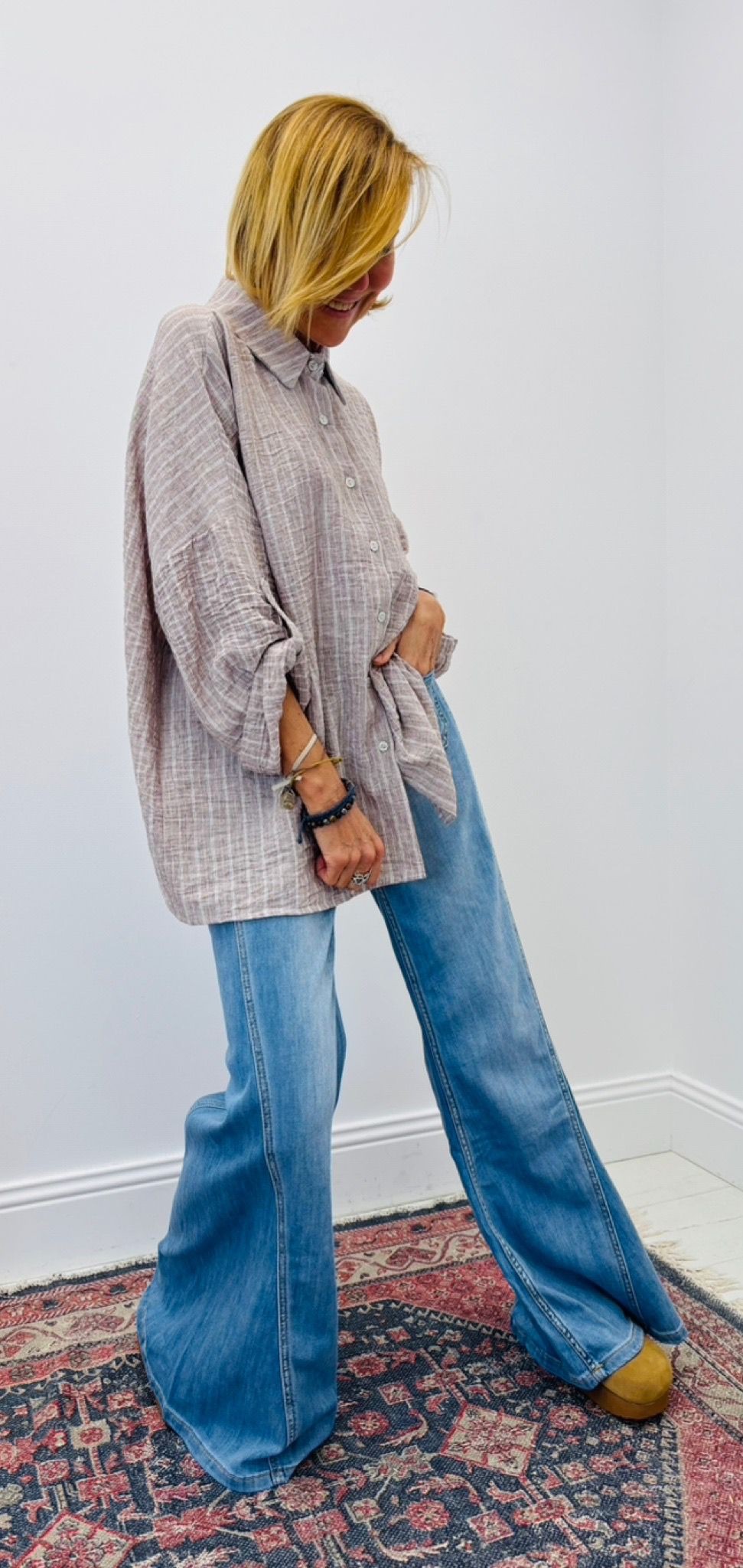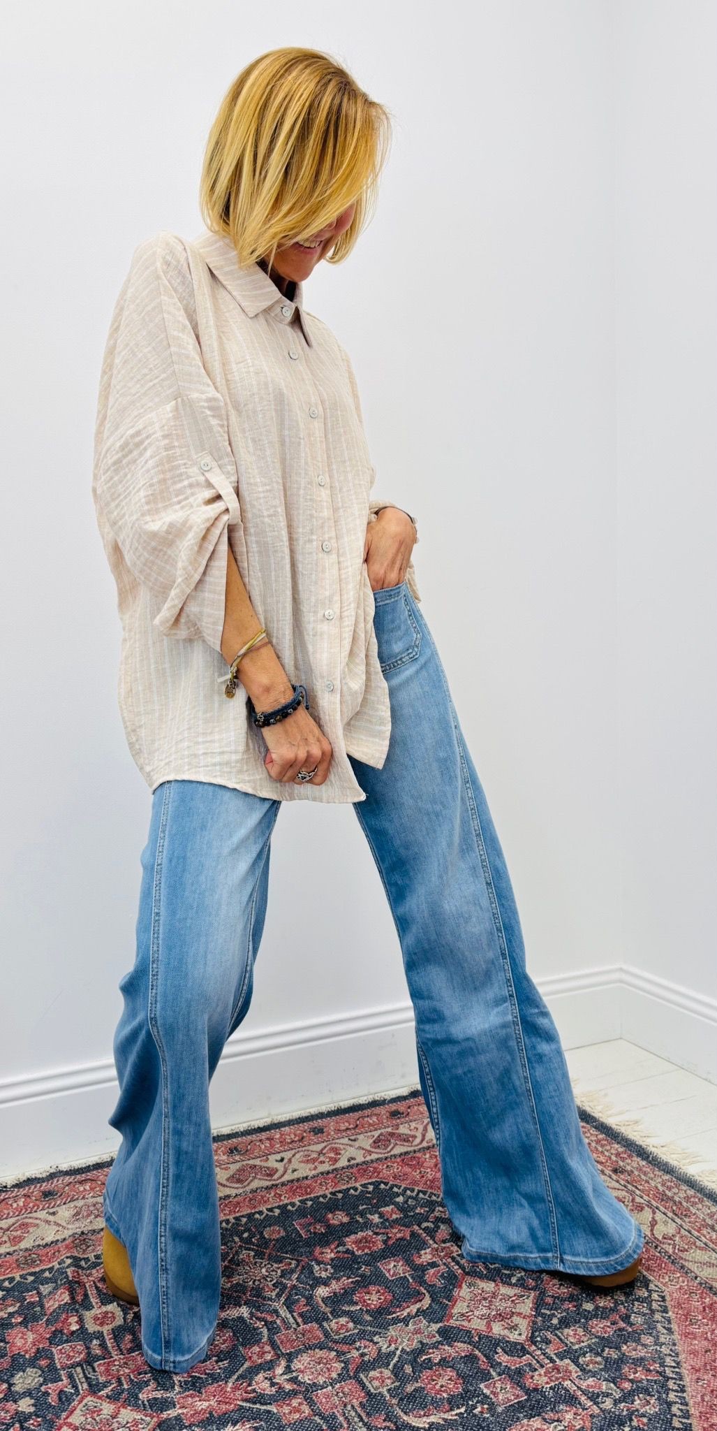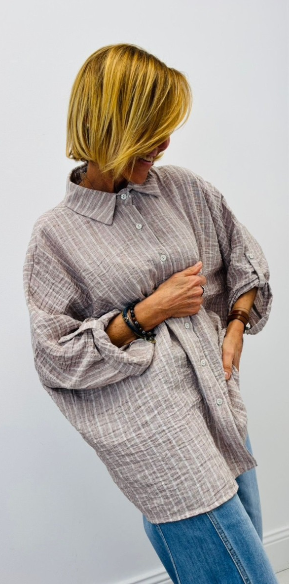 Chemise rayée, boutons, manches pouvant se remonter