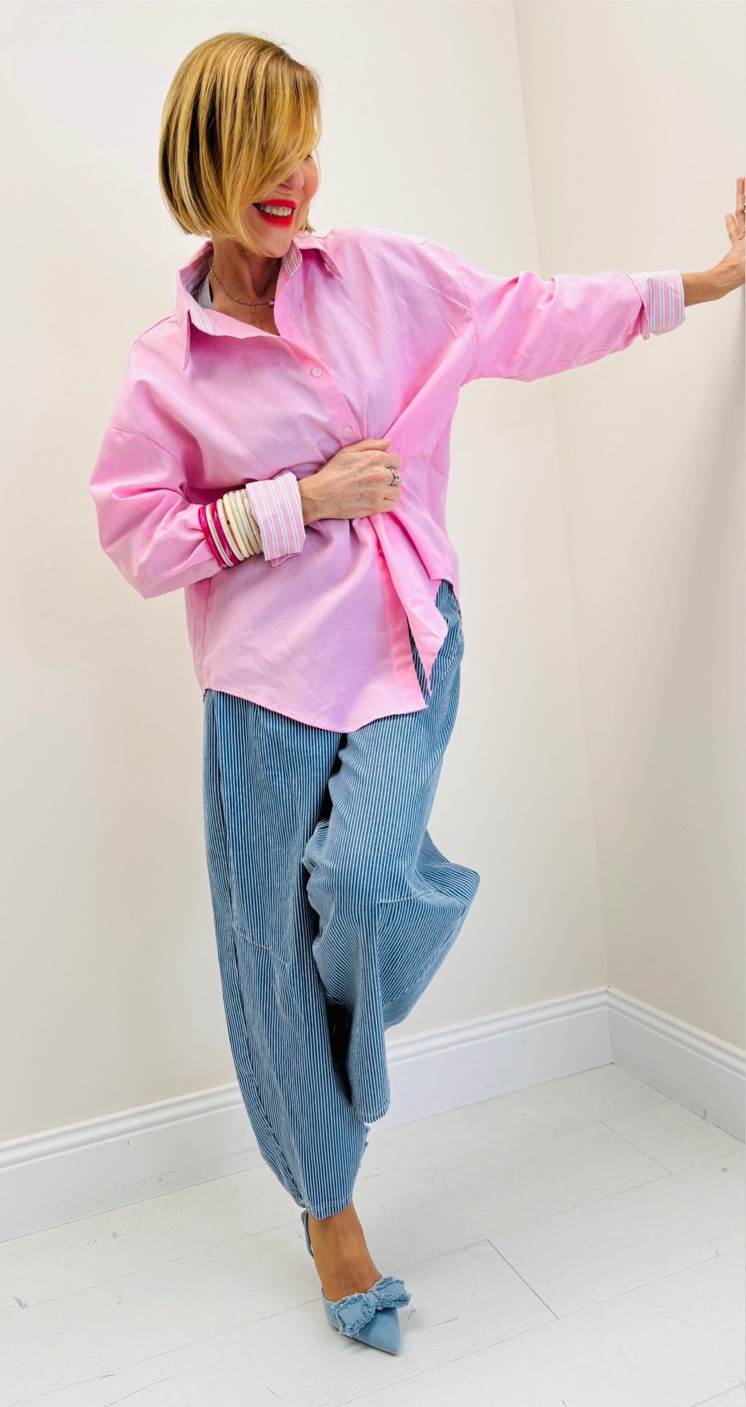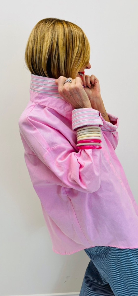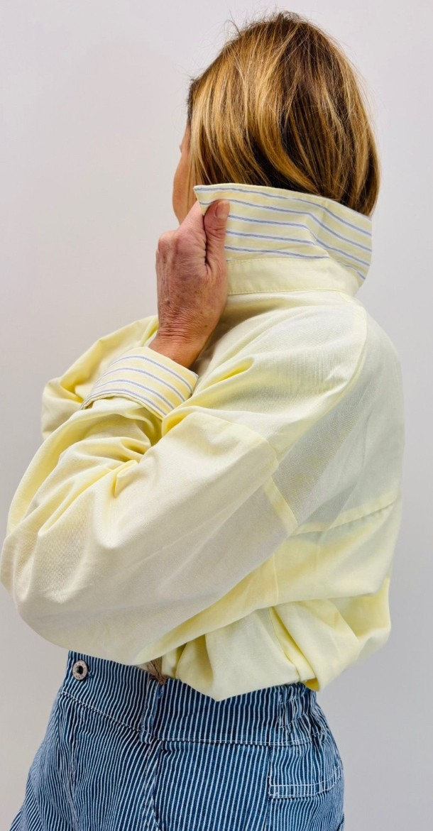 Chemise unie avec au dos du col et au revers des poignets des fines rayures