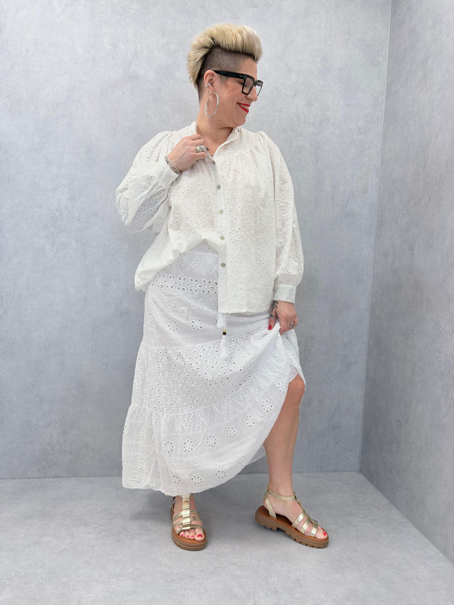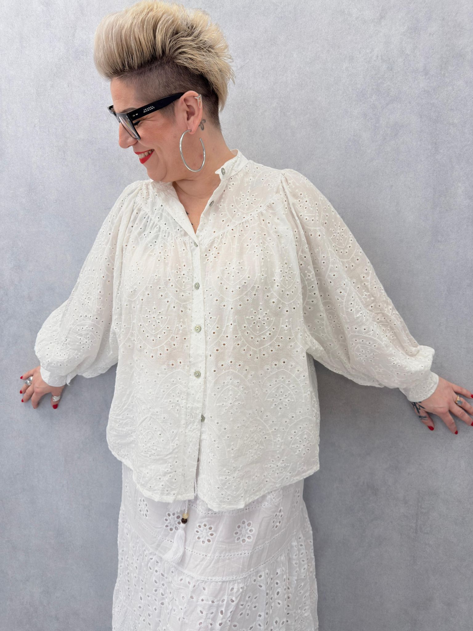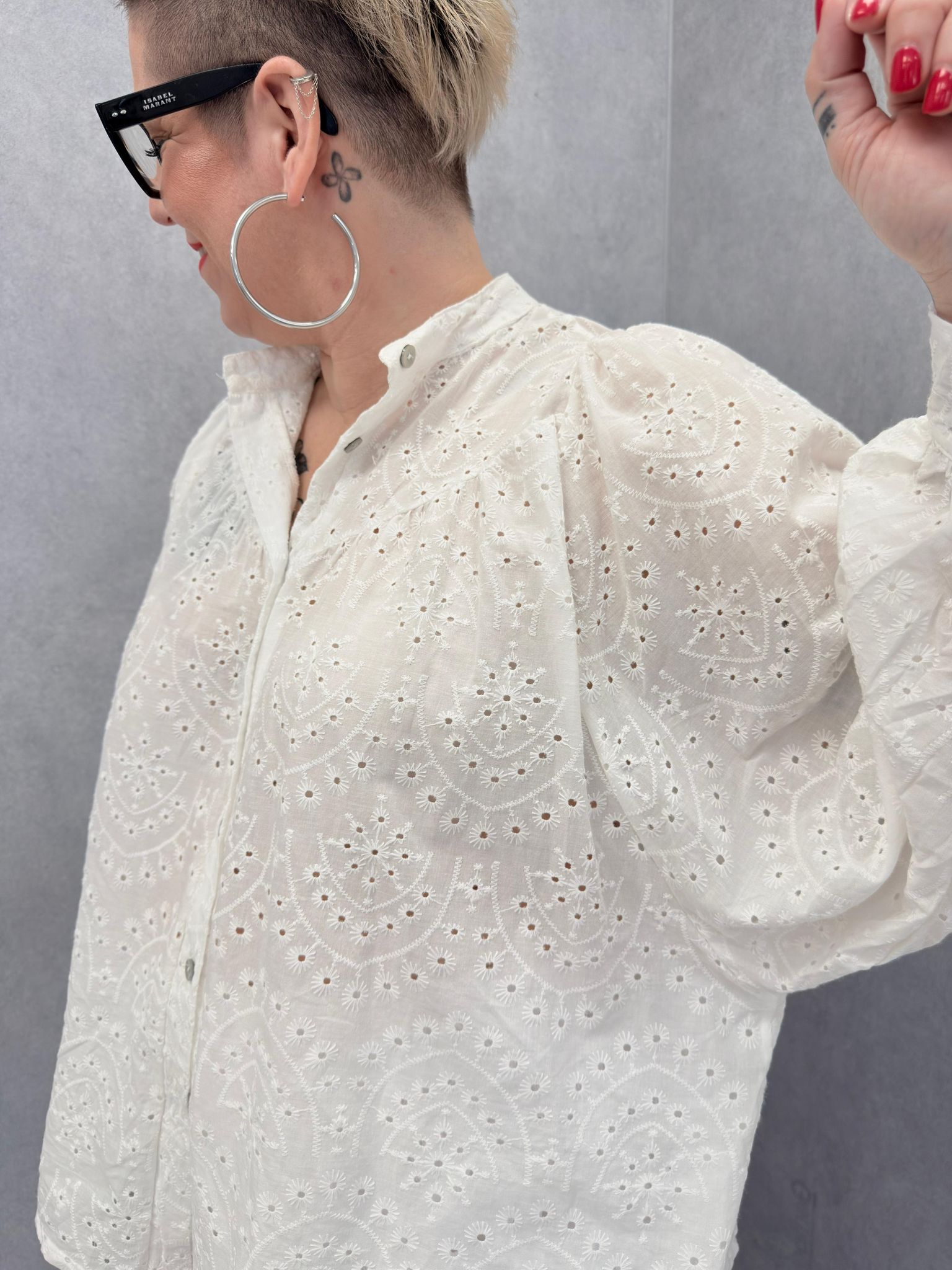 Chemise blanche boutonnée, avec de la broderie