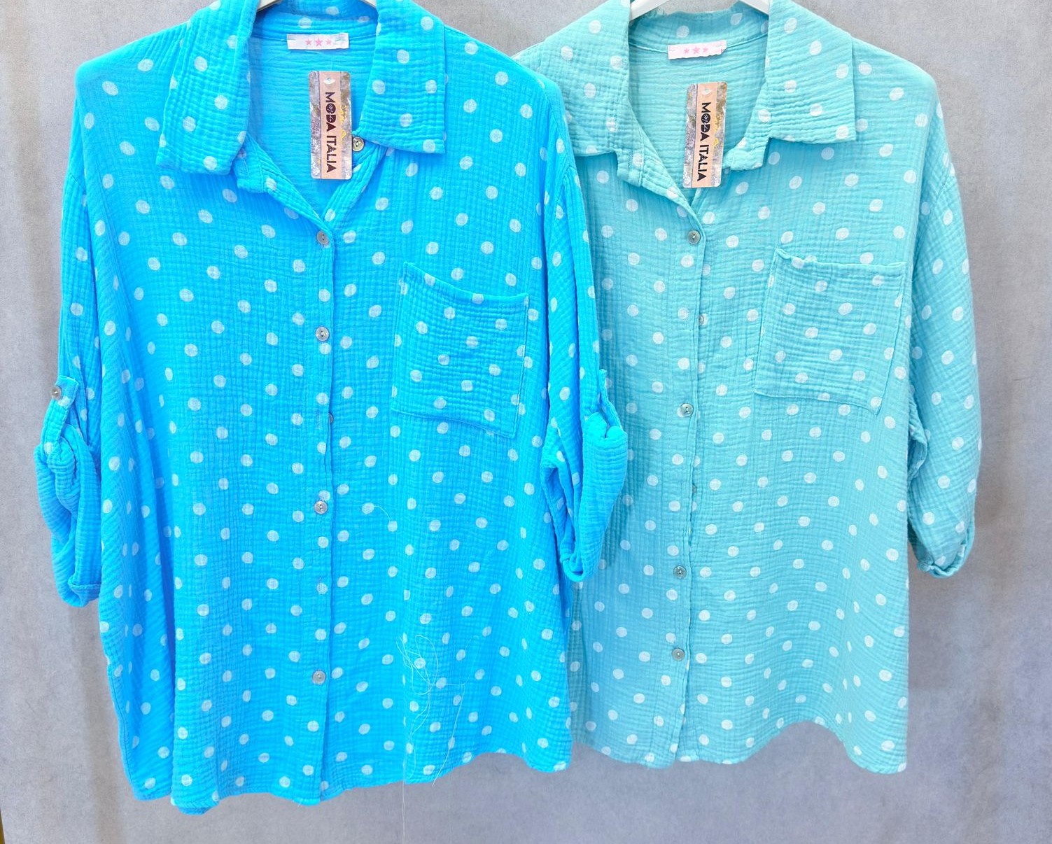 Chemise à pois, aspect légèrement gaufré, boutons, 1 poche