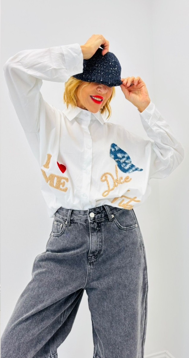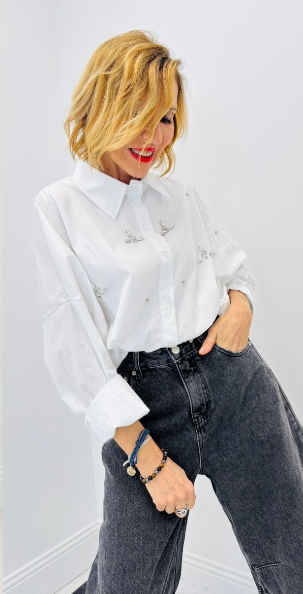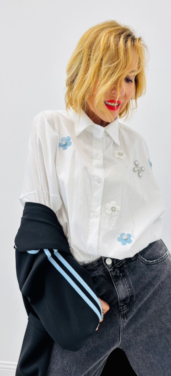 Chemise blanche avec motifs, boutons