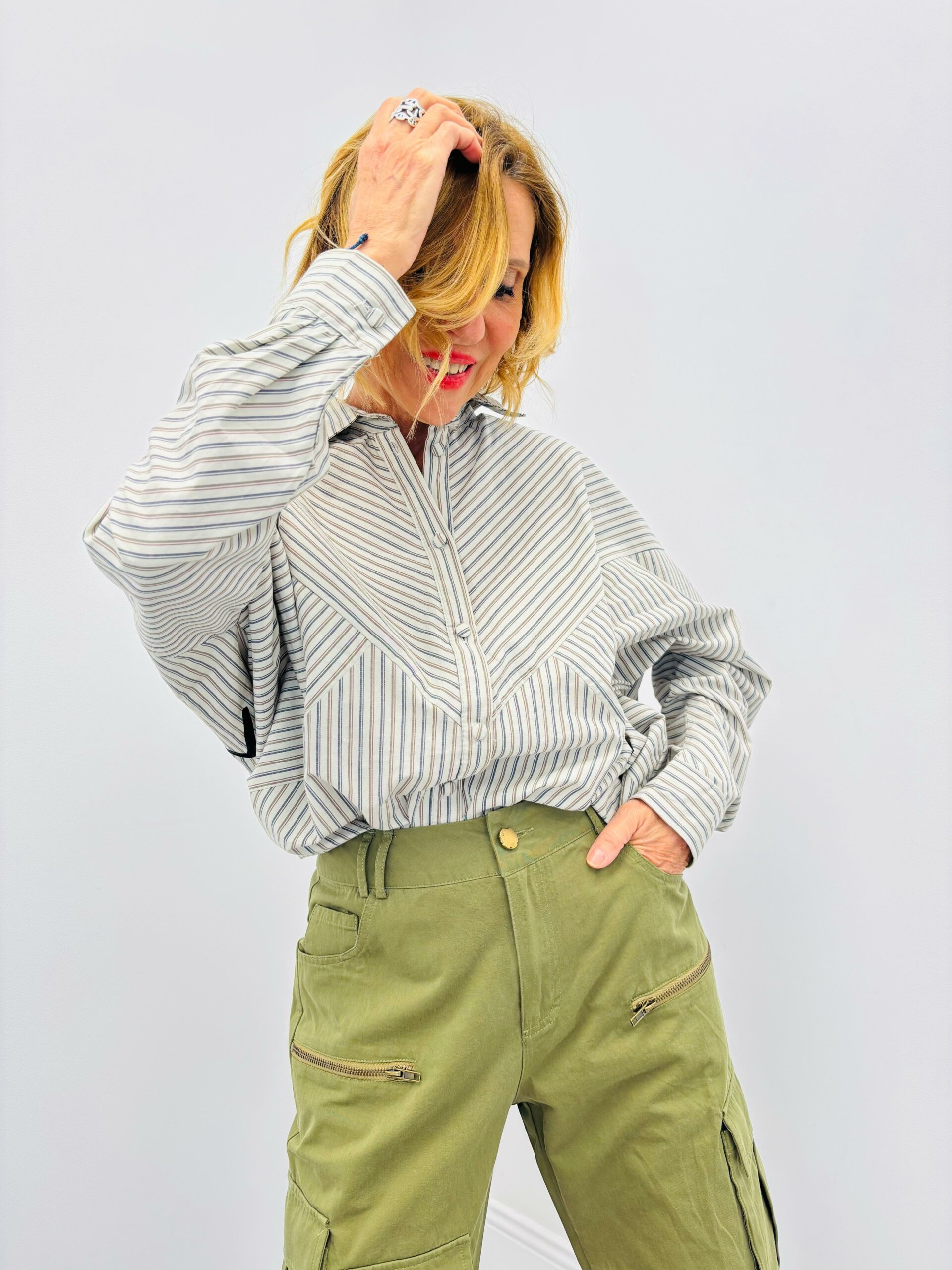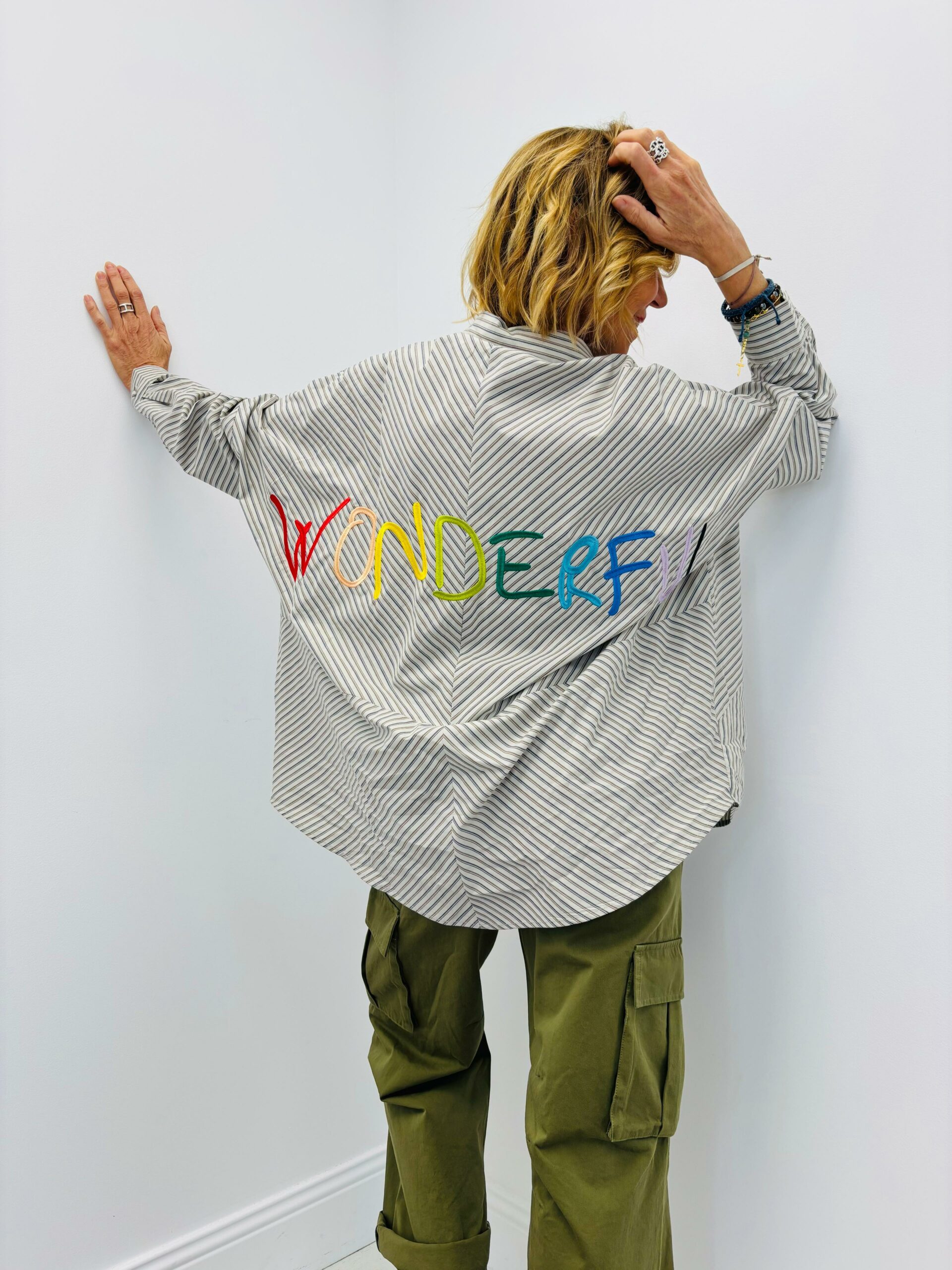 Chemise rayée, coupe large, au dos « wonderful », boutons