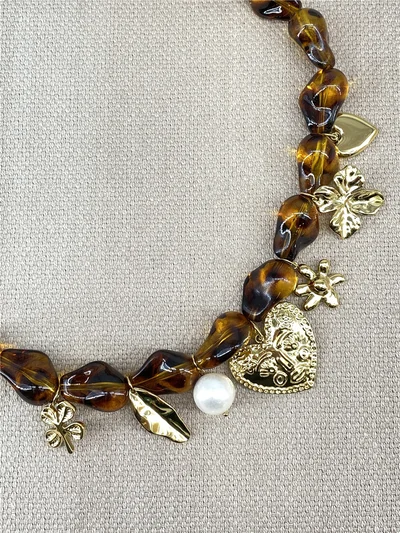 Collier avec perles en résine, pampilles dorées et perle