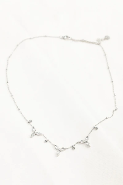 Collier argenté, pétales de fleurs, oxyde de zirconium