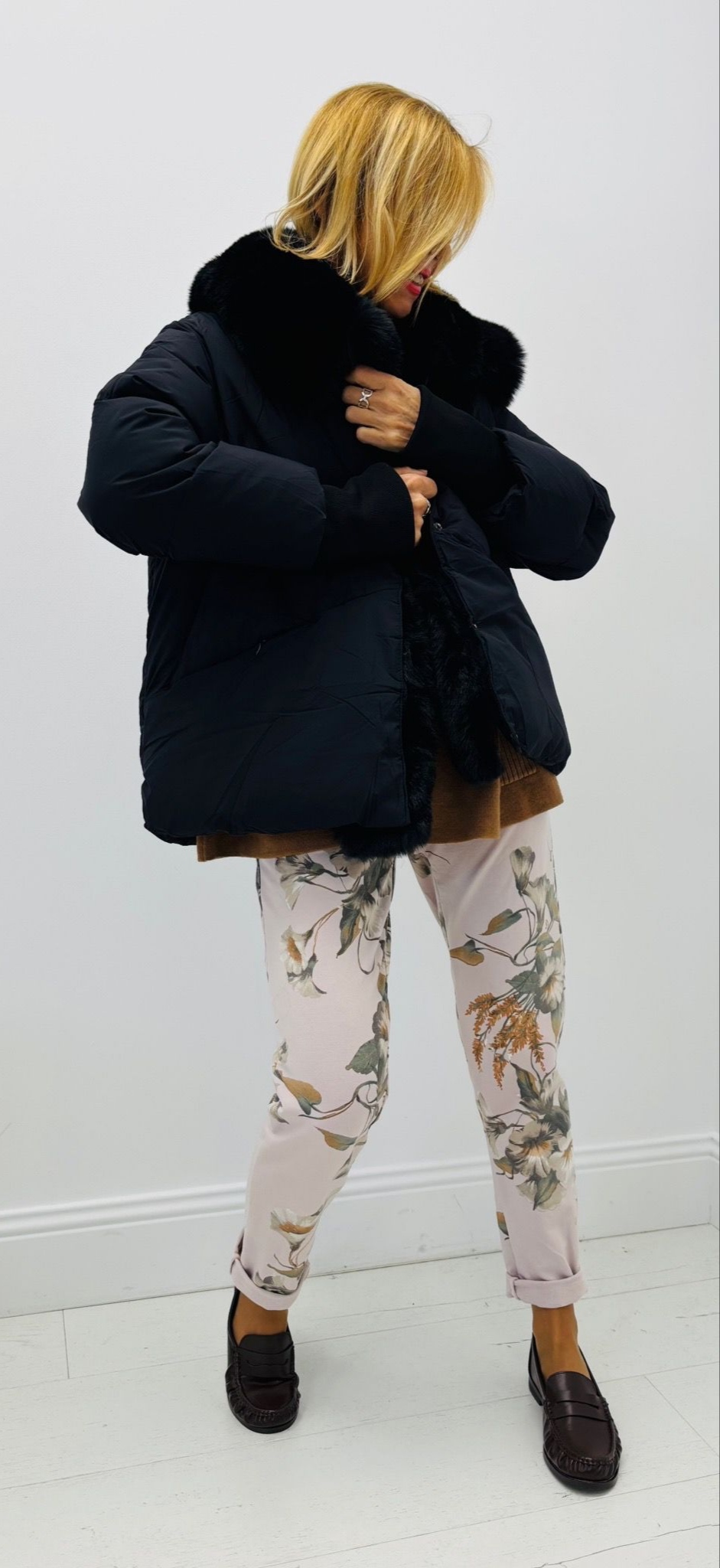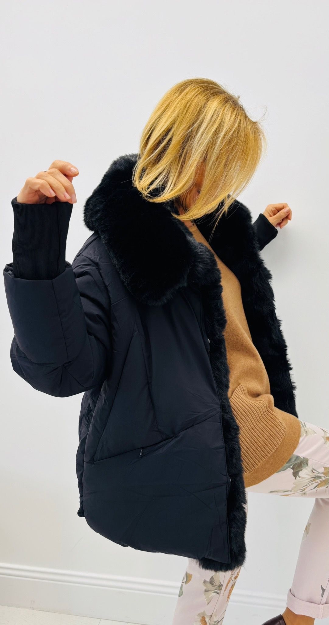 Doudoune courte, chaude, fausse fourrure amovible, grand col, très belle qualité