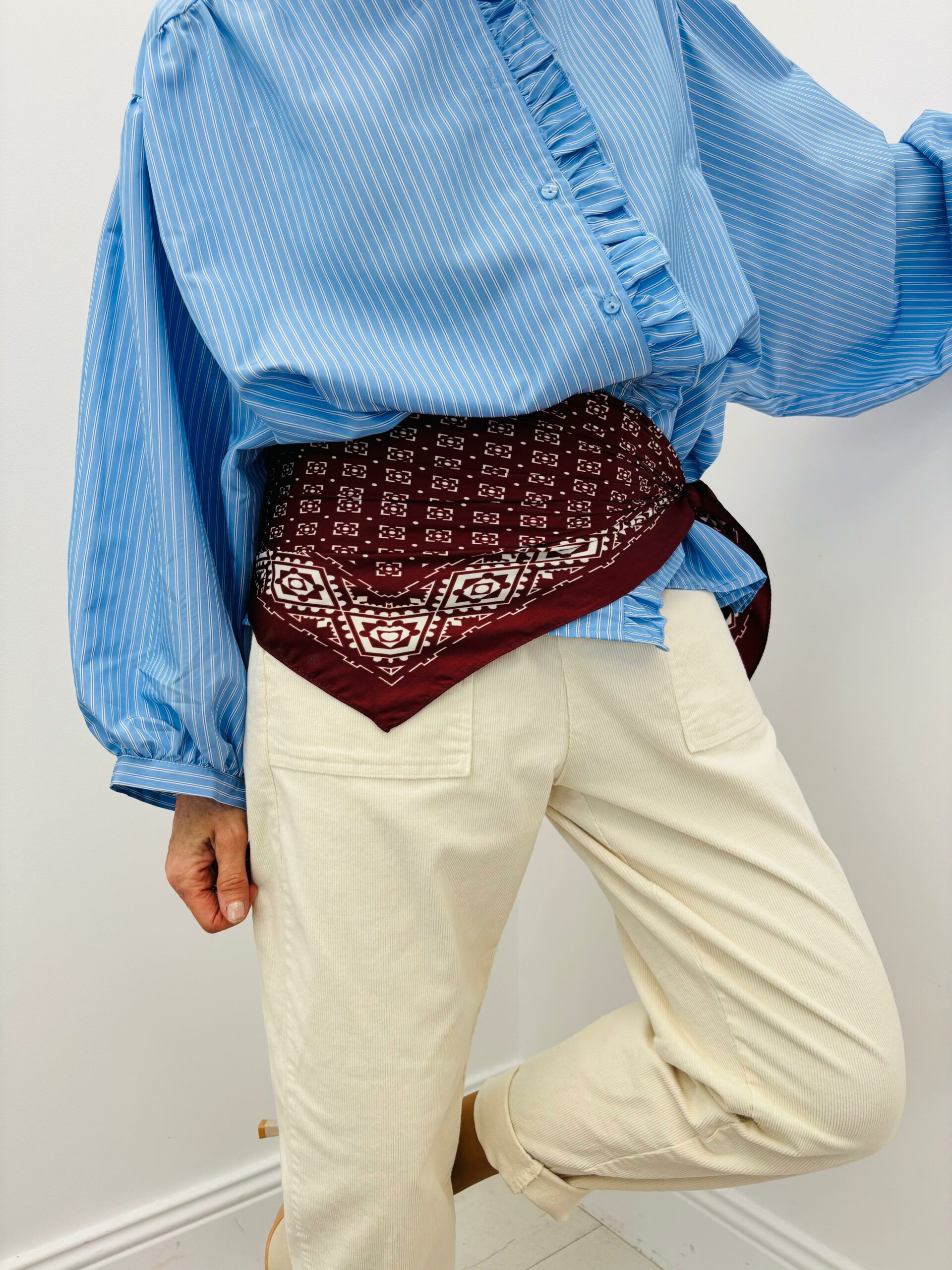 Foulard pouvant se porter aussi au poignet, dans les cheveux, à la taille