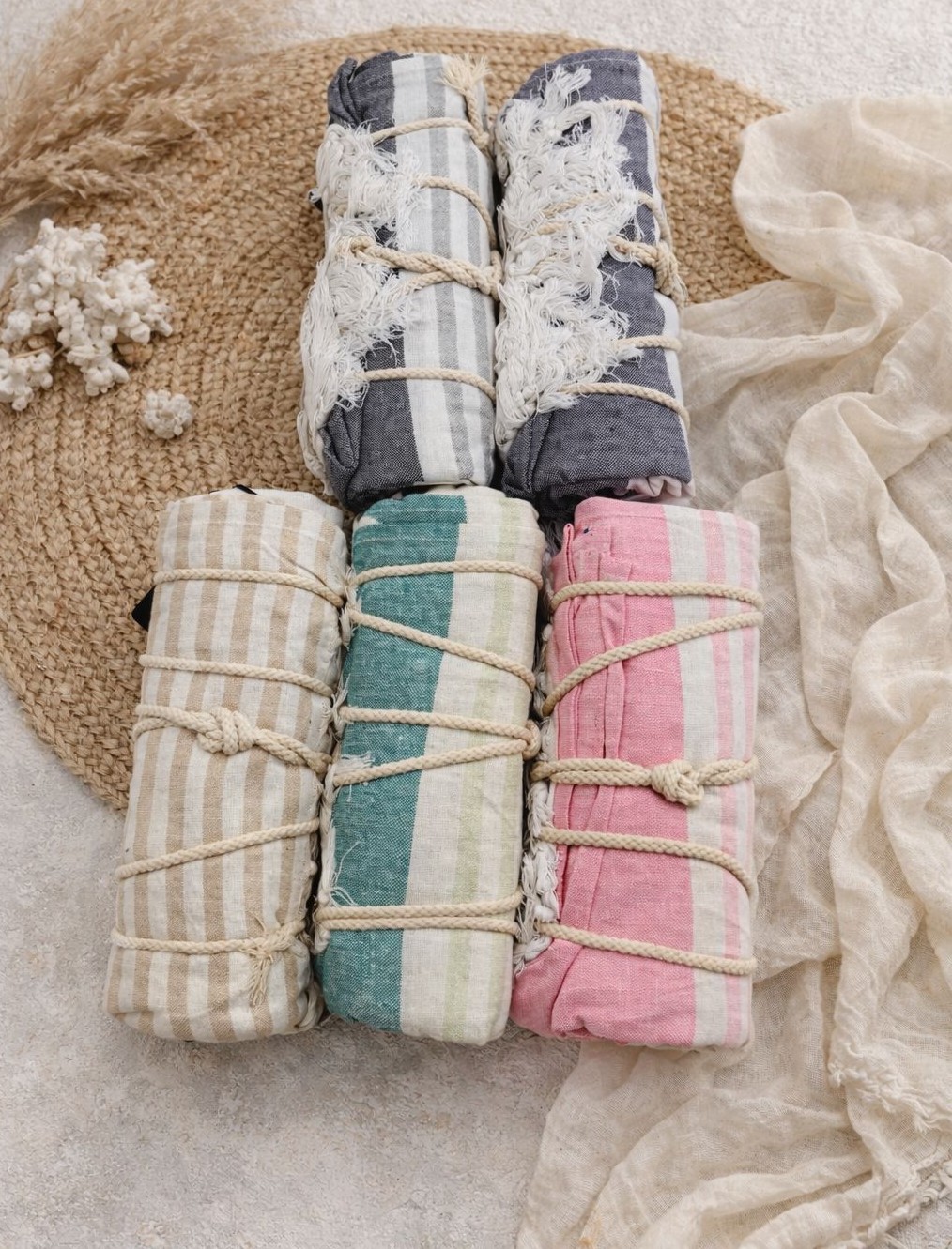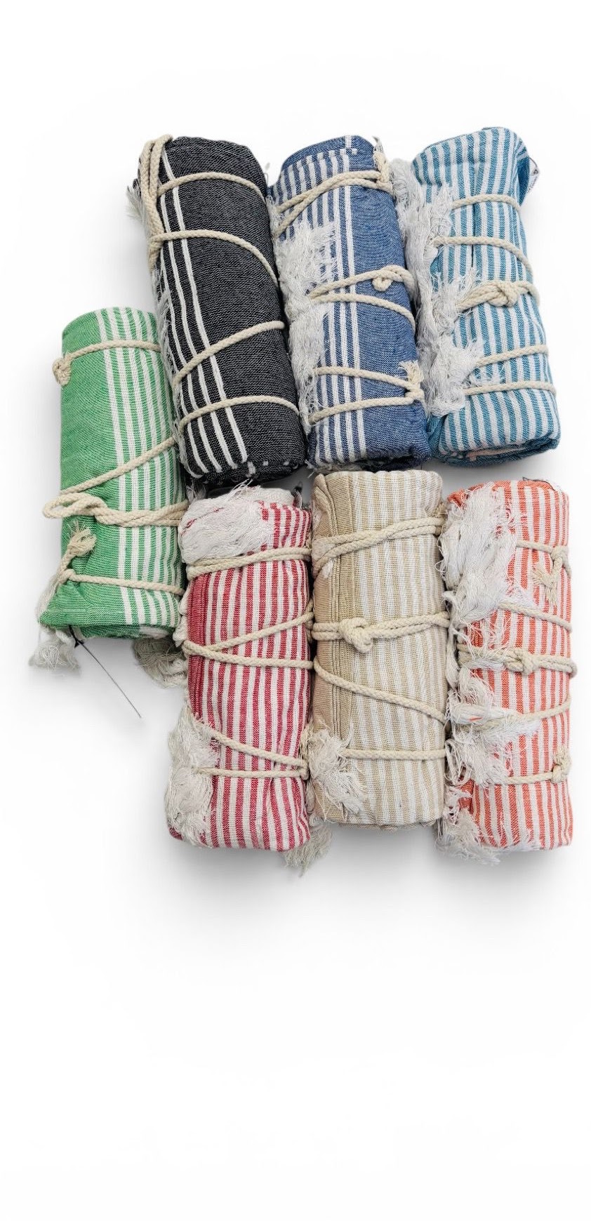 Fouta de plage rayée, franges aux extrémités, matière légère et respirante, séchage rapide