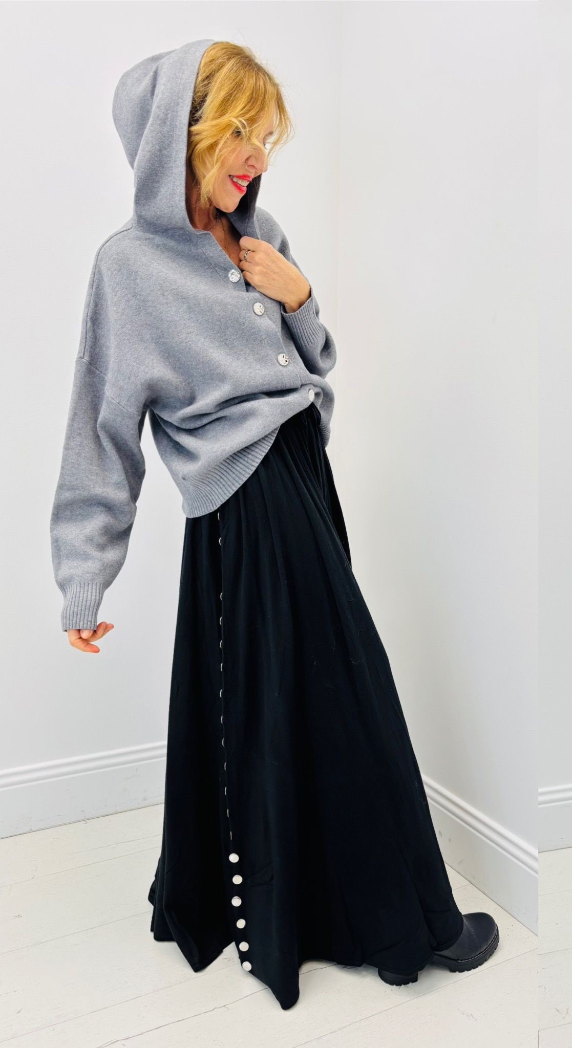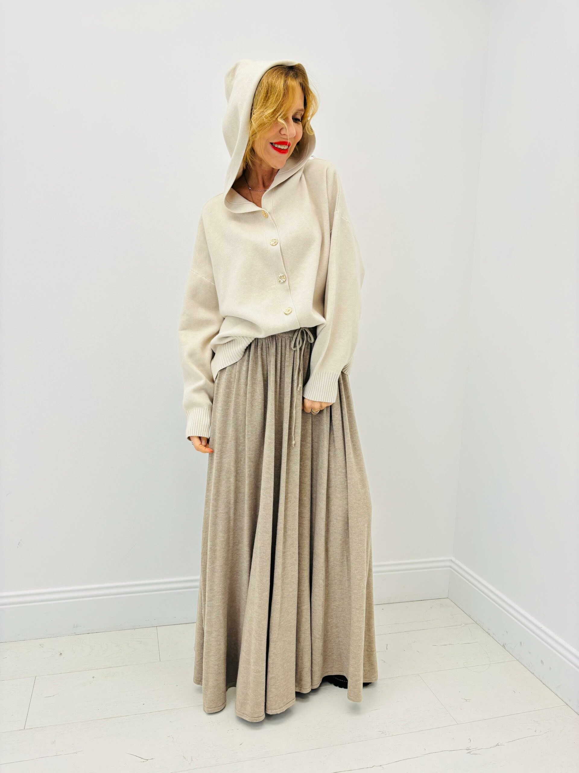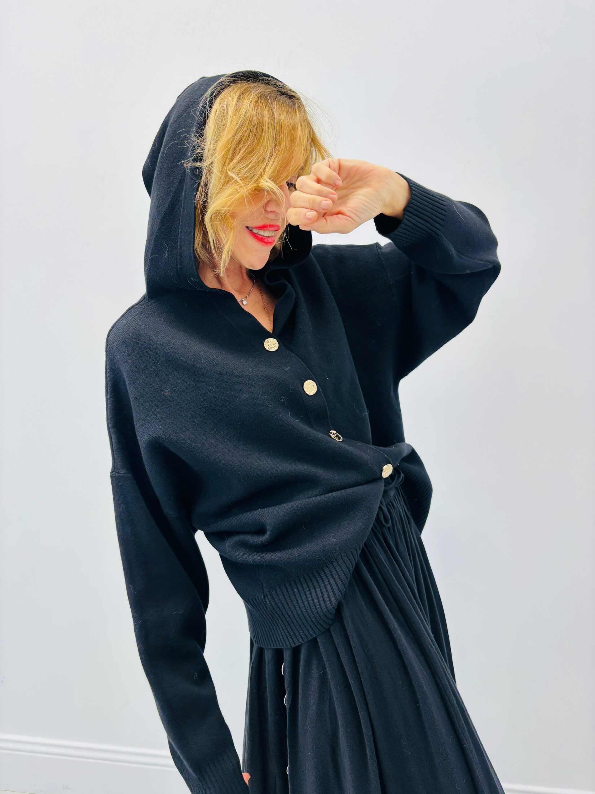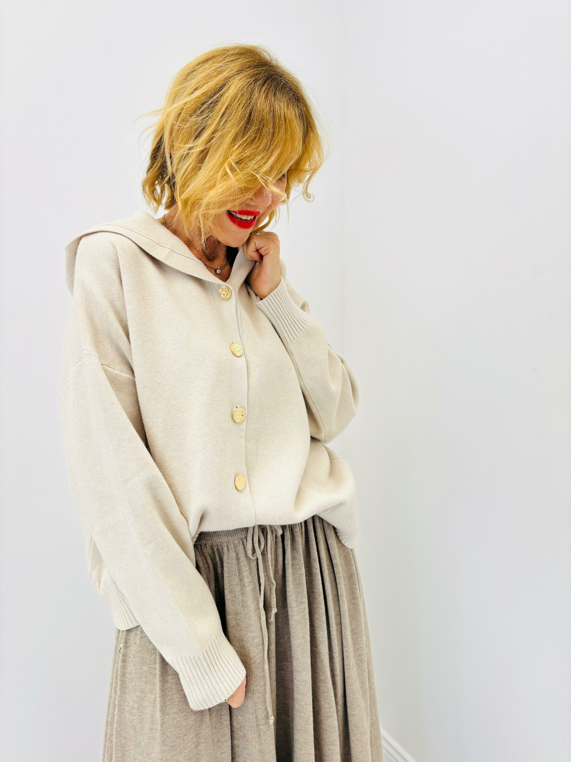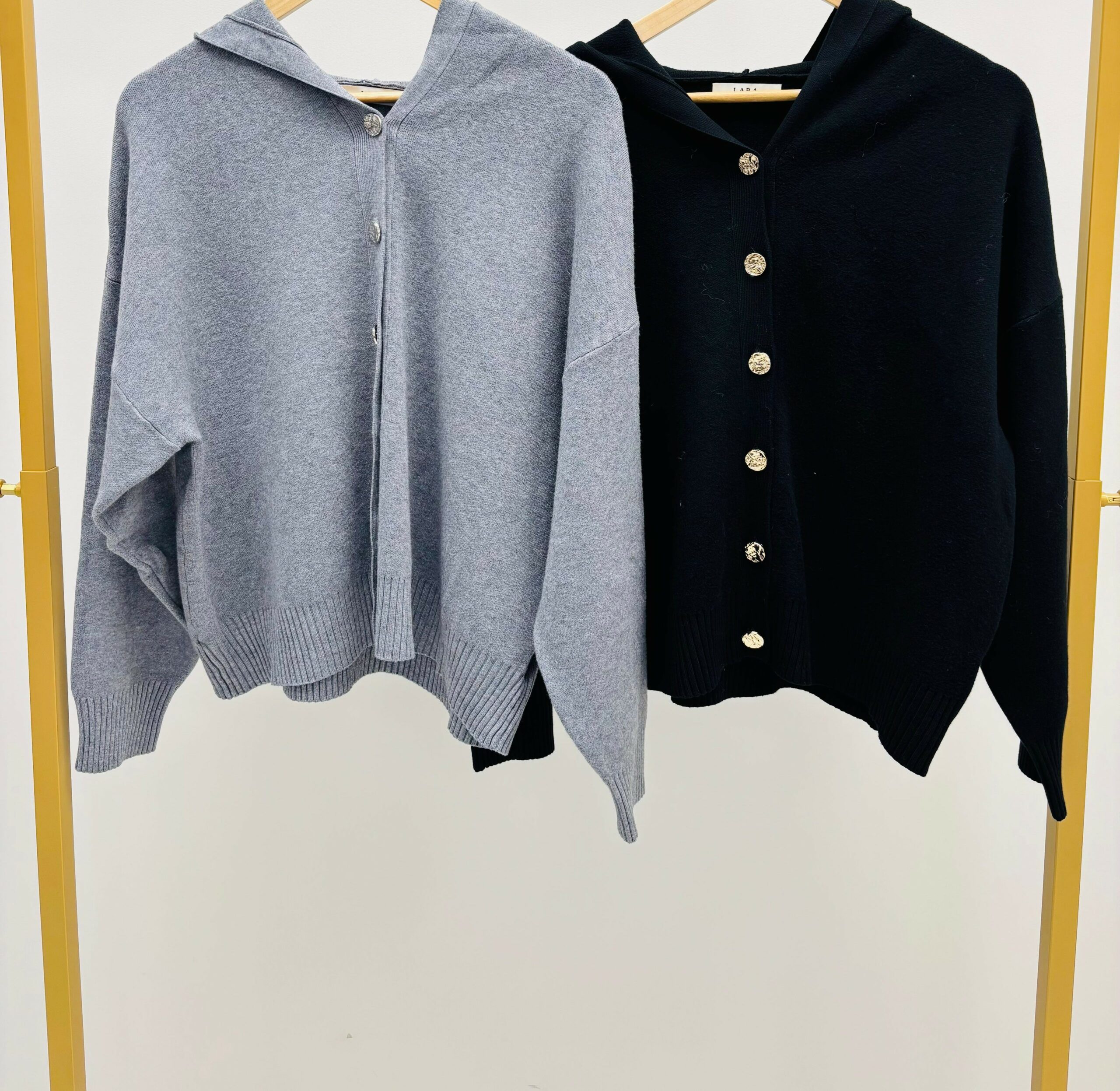 Gilet avec capuche, boutons, très belle qualité de lainage, matière qui ne pique pas