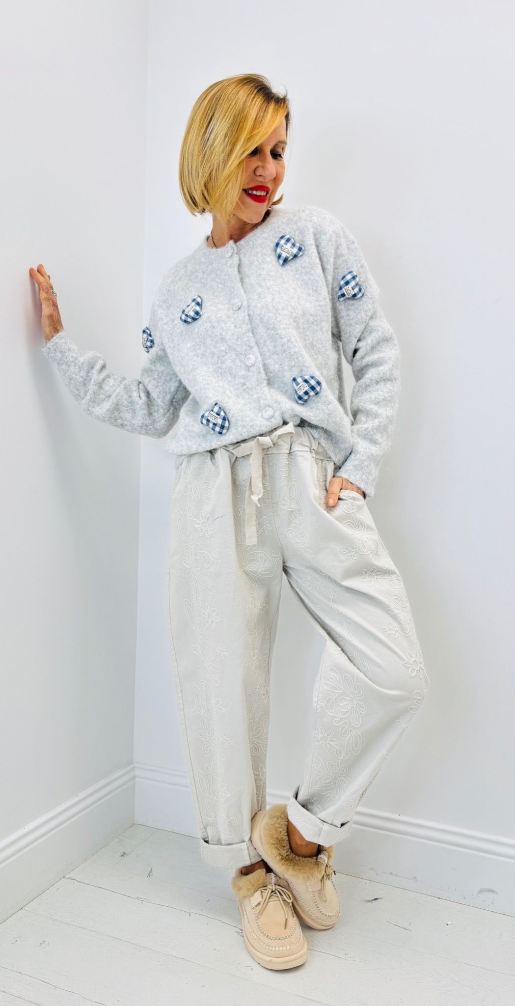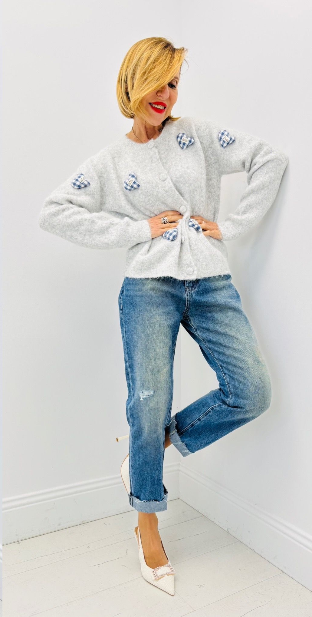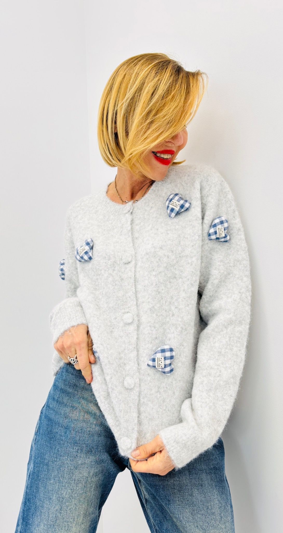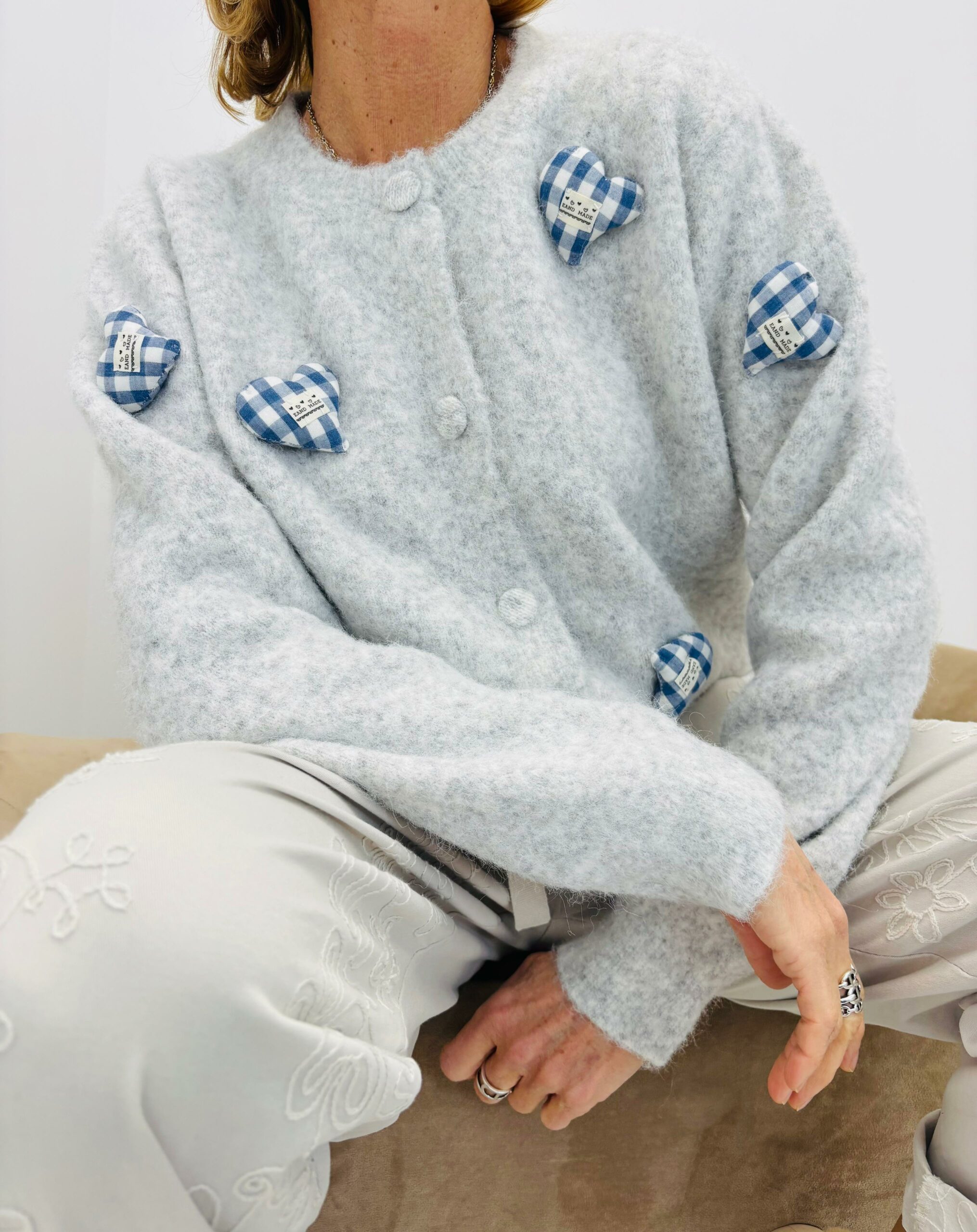 Gilet boutonné avec des cœurs en reliefs, juste de face