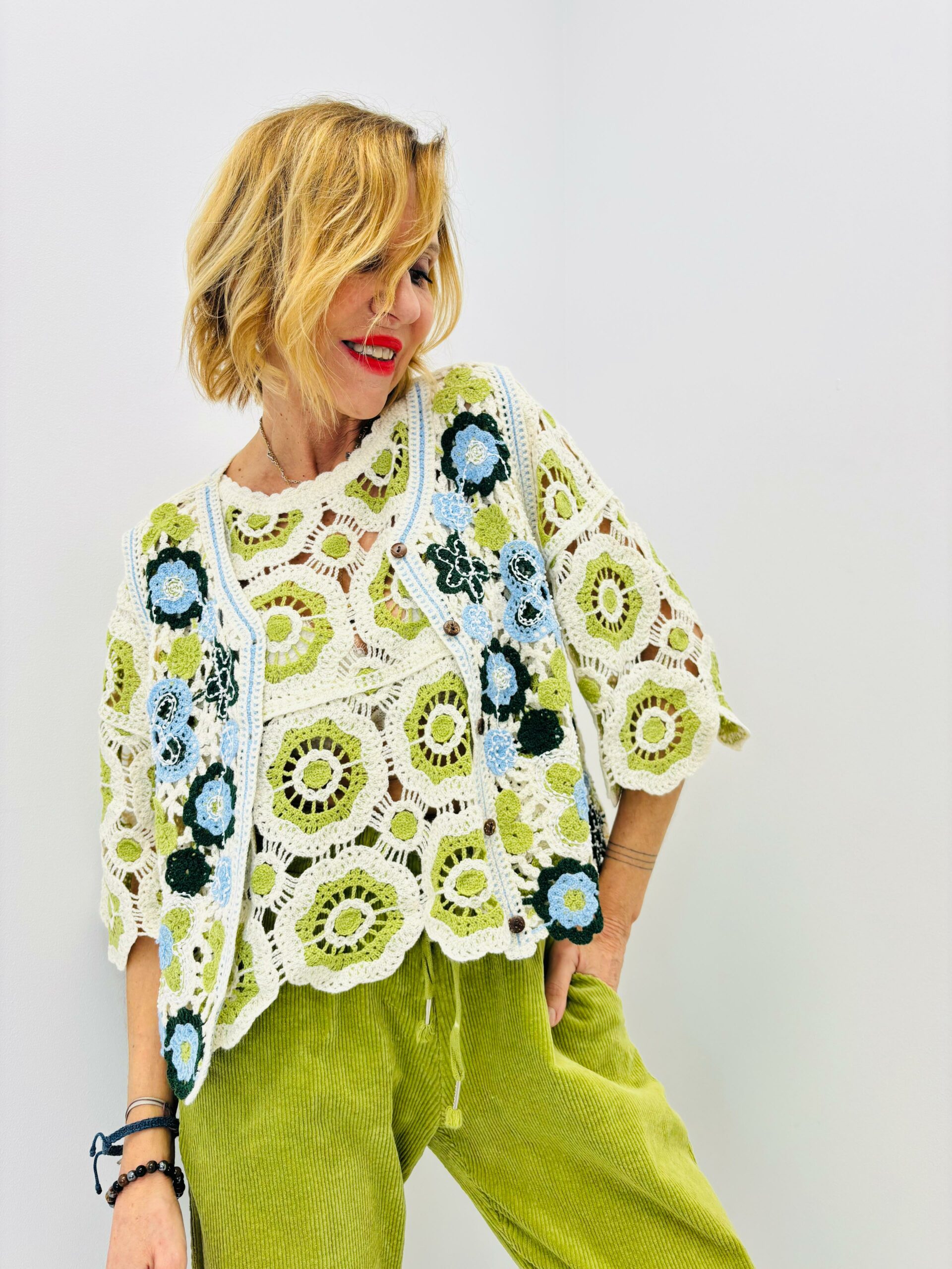 | Gilet crochet | Vert, Bleu |
