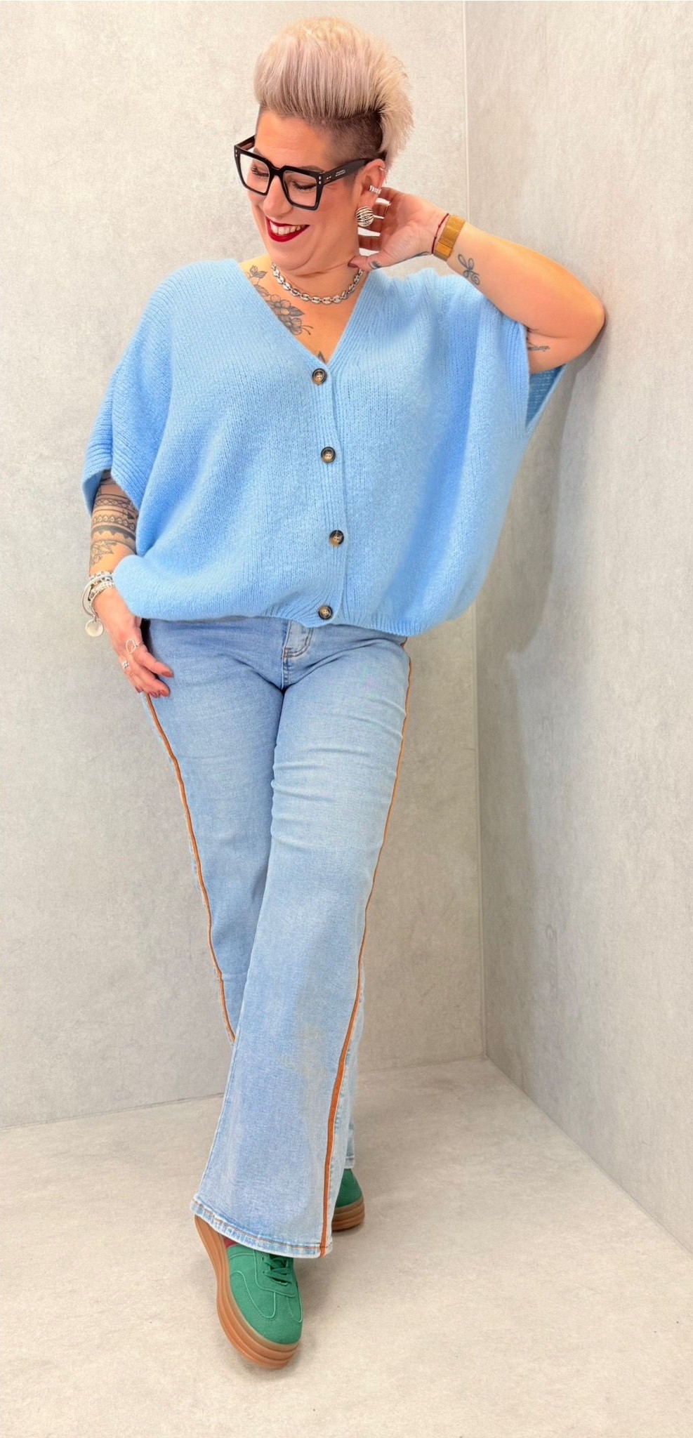 | Gilet Priscilla | Écru, Jaune, Noir, Bleu ciel |