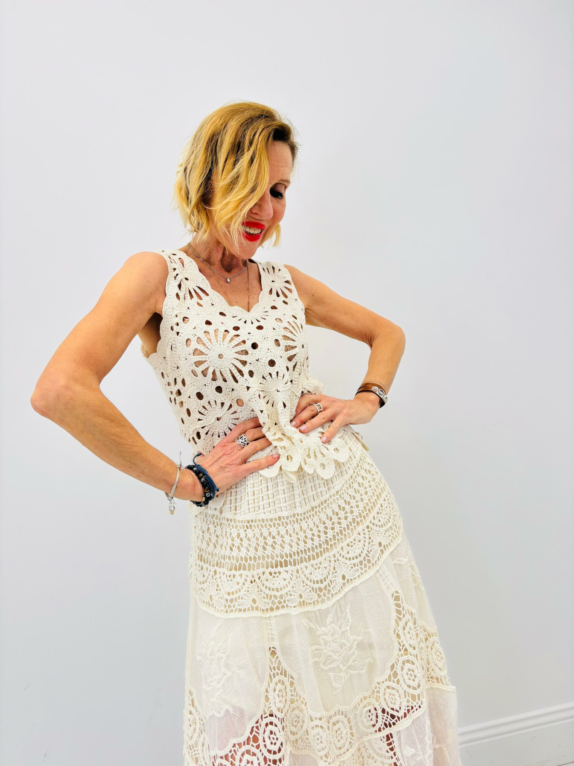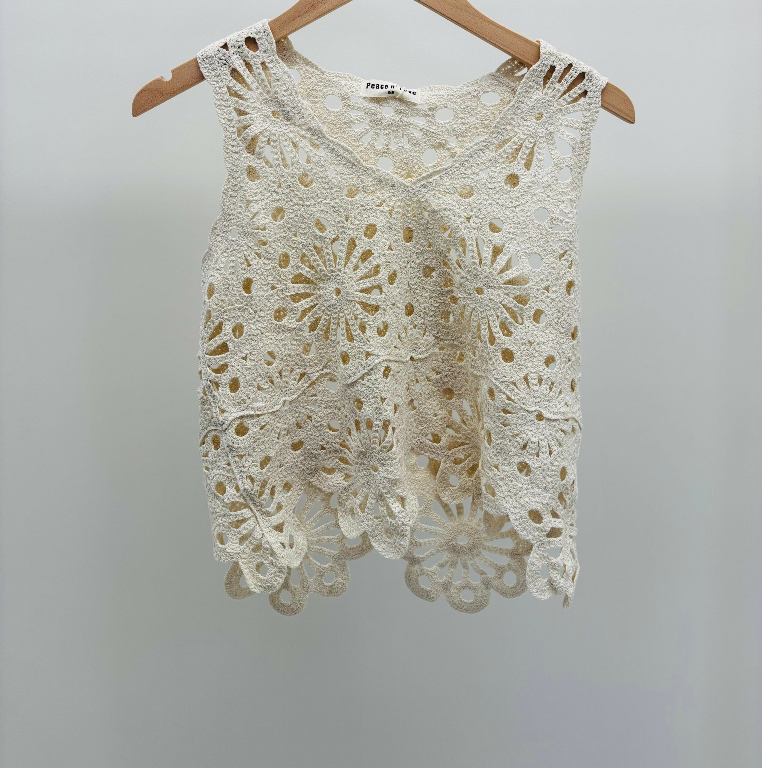 Haut en crochet sable, encolure en V, sans manches