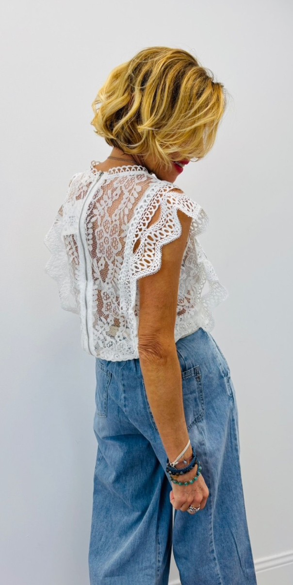 Haut sans manche à dentelle, doublé devant, zippé au dos