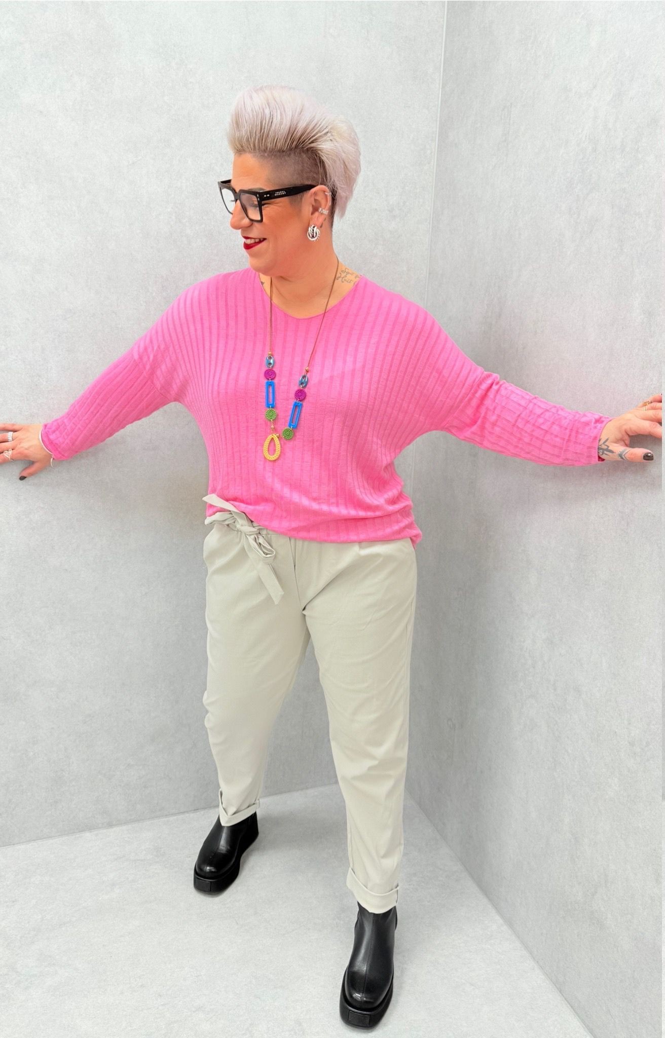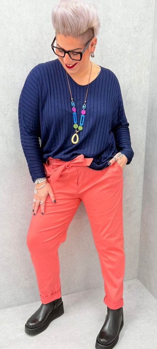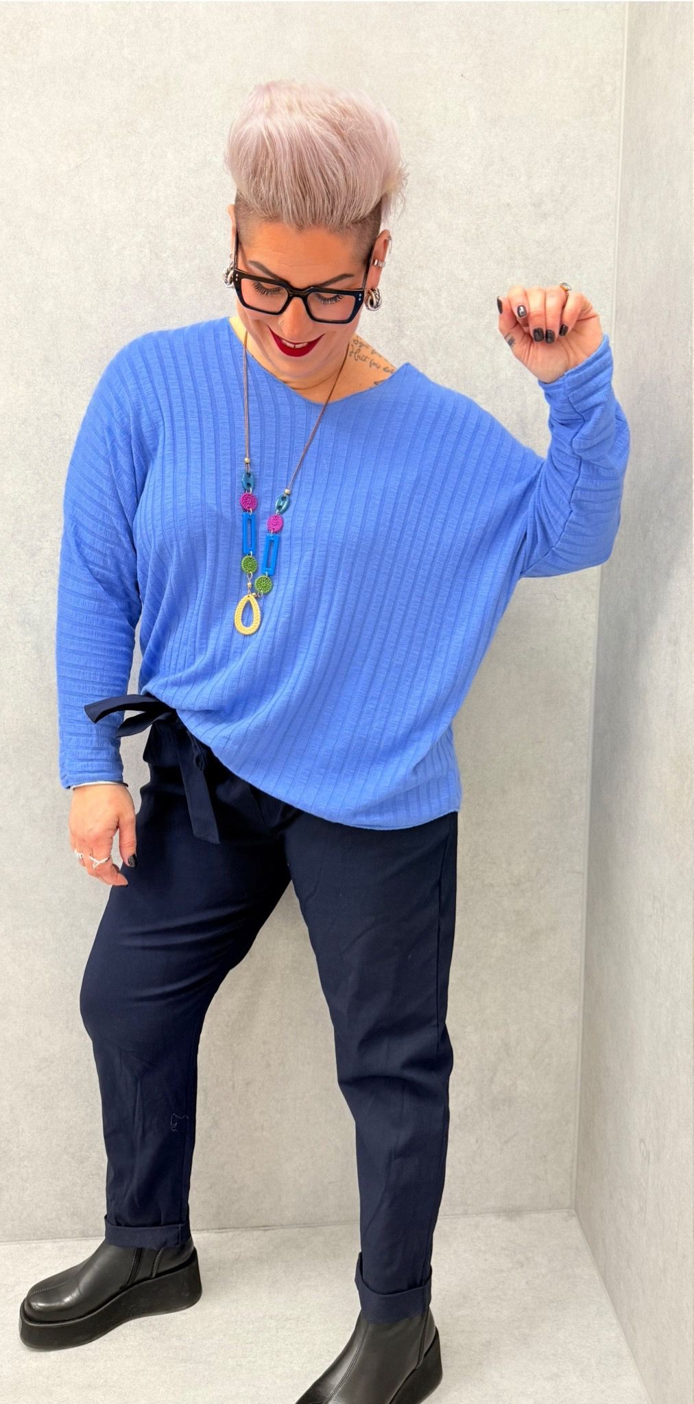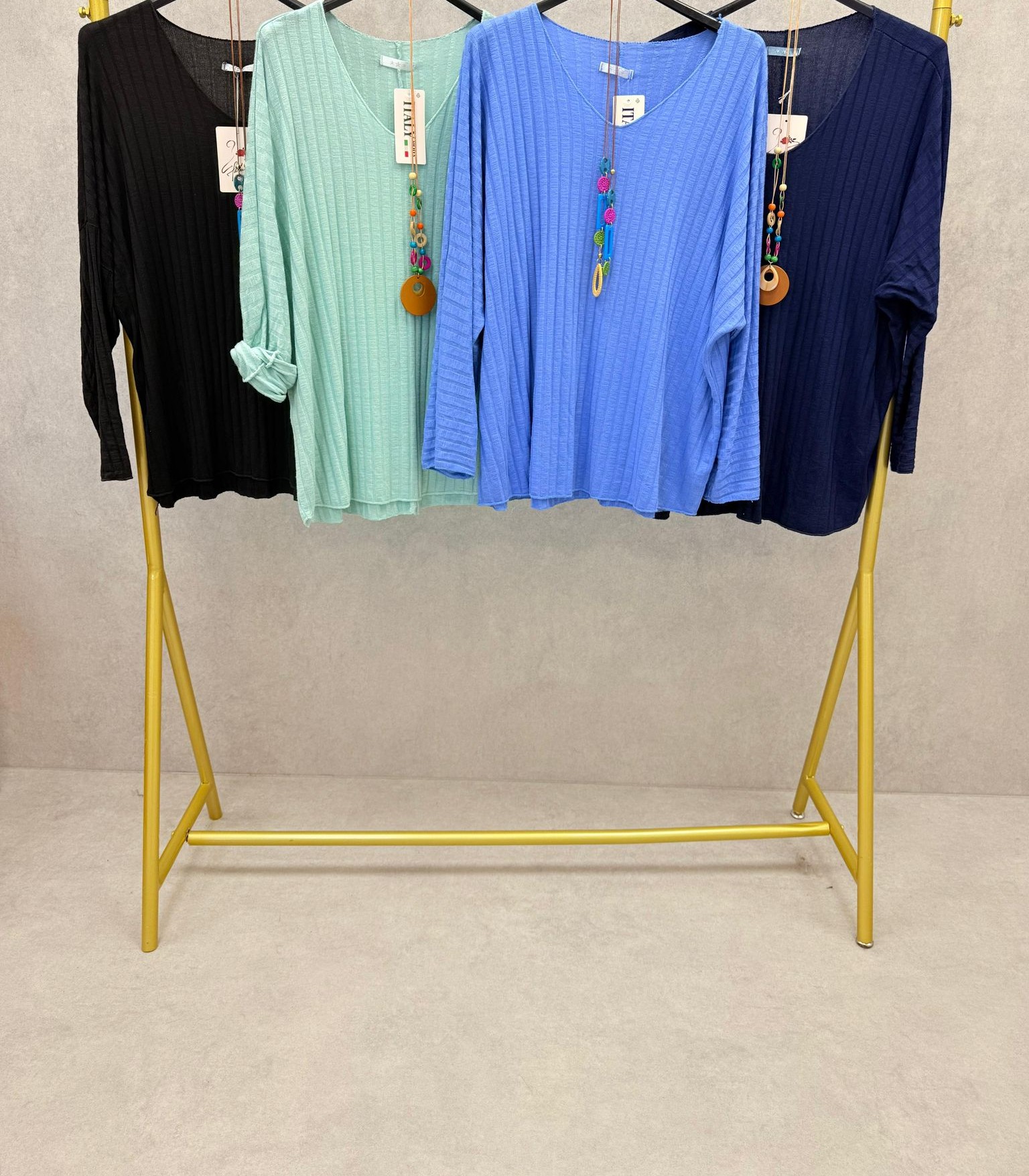 Haut uni, légèrement côtelé, très agréable à porter, encolure en V, manches longues, vendu avec un collier