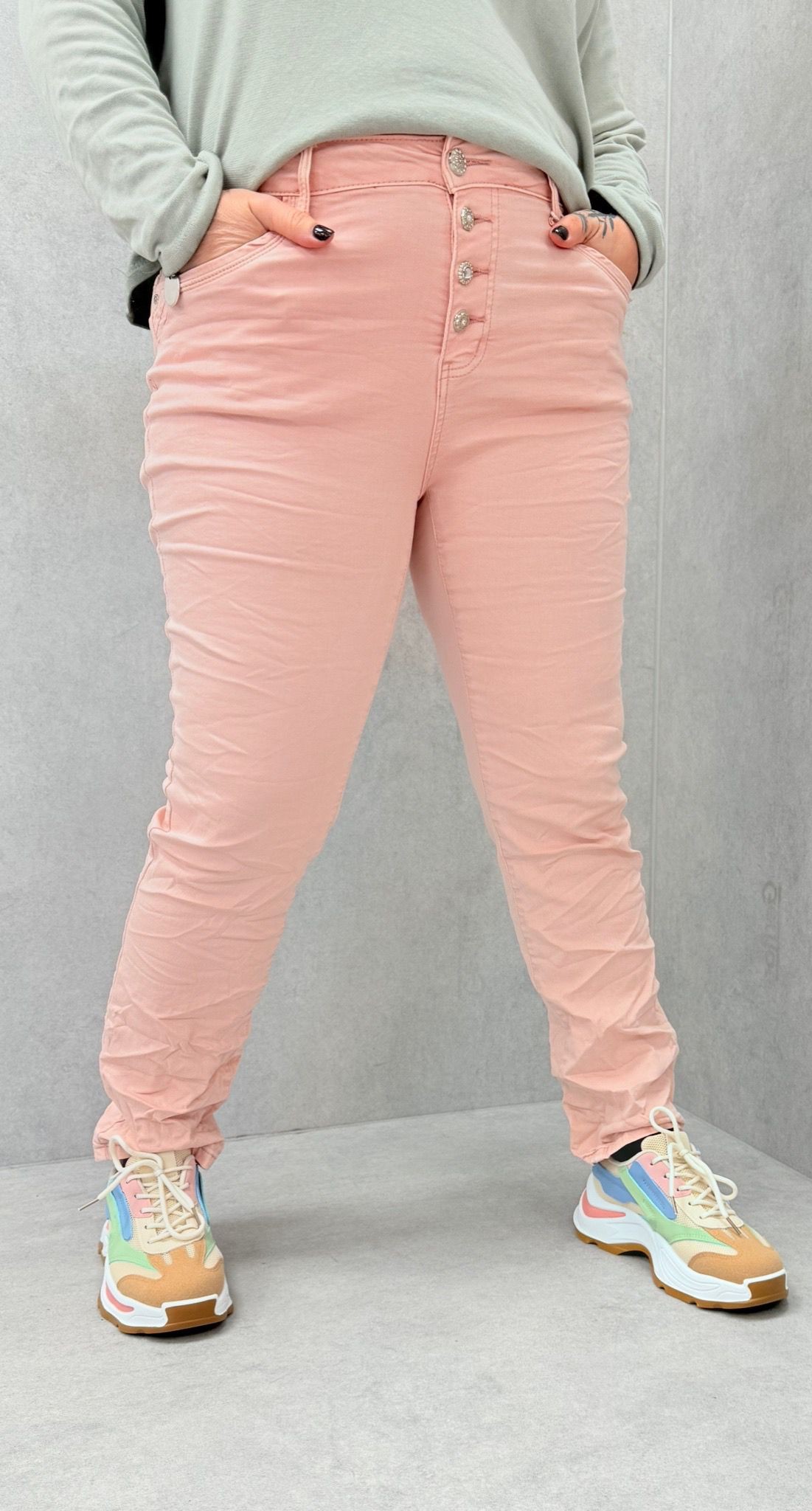 Jeans rose, boutons bijoux, poches, hyper confortable, prendre 1 taille en dessous de sa taille habituelle