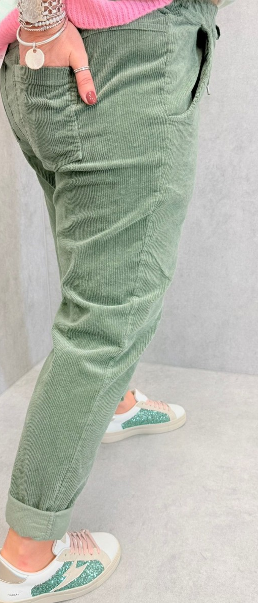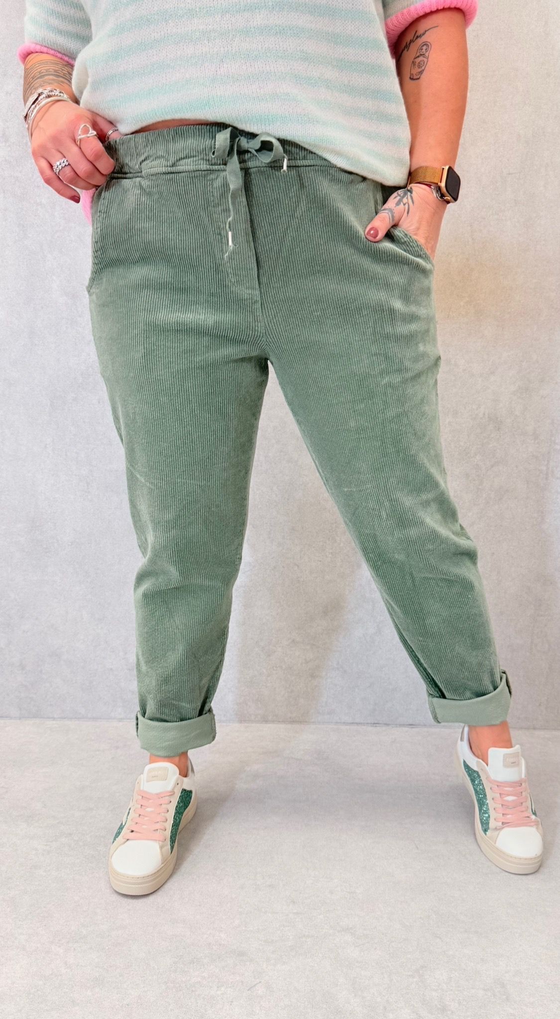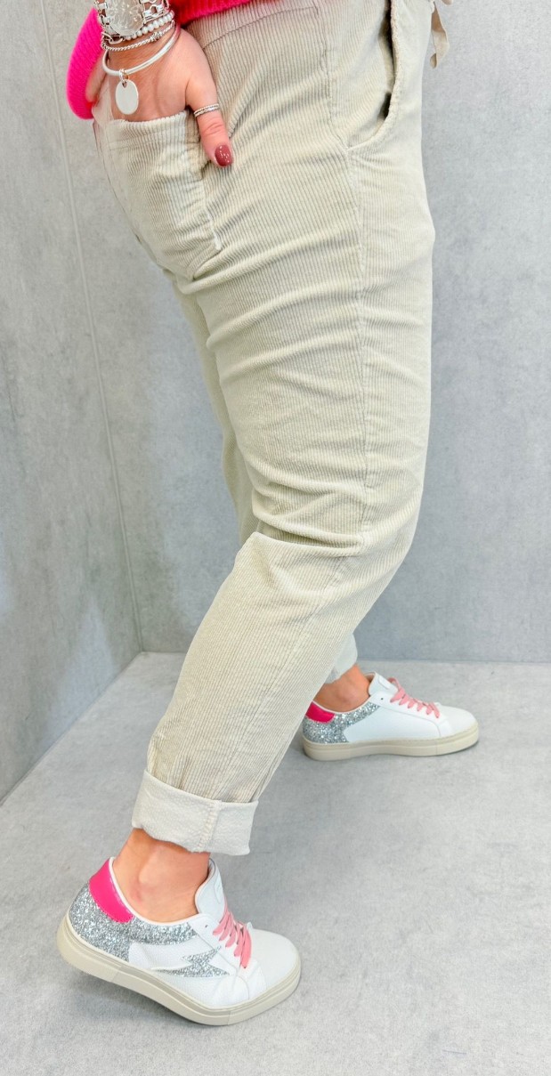 Pantalon velours, taille élastique, cordon à serrer à la taille, poches