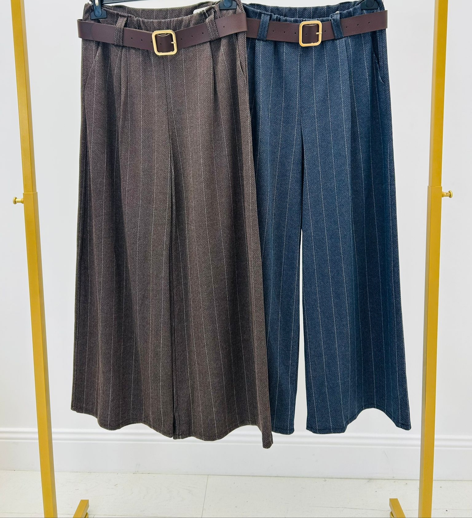 Pantalon à rayures, taille élastique, vendu avec sa ceinture, poches