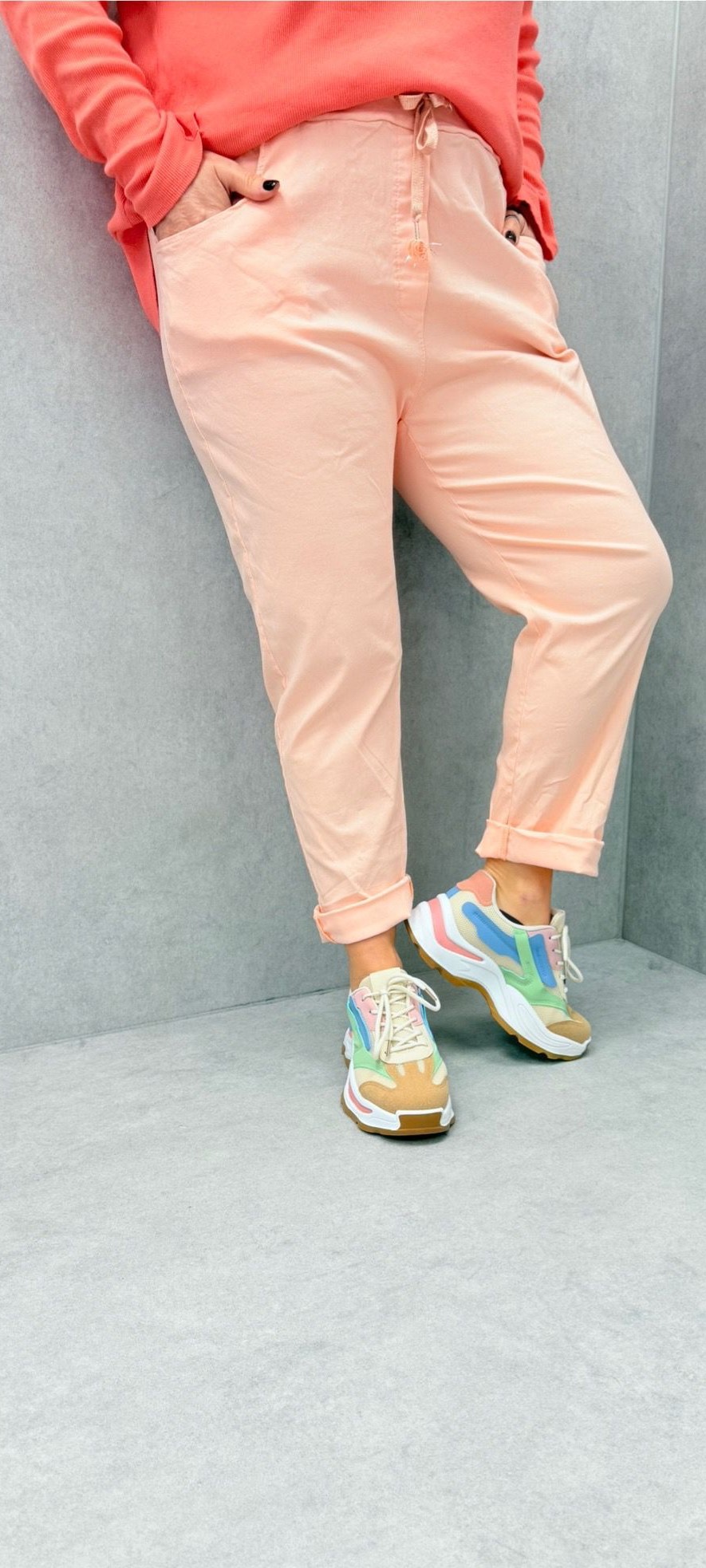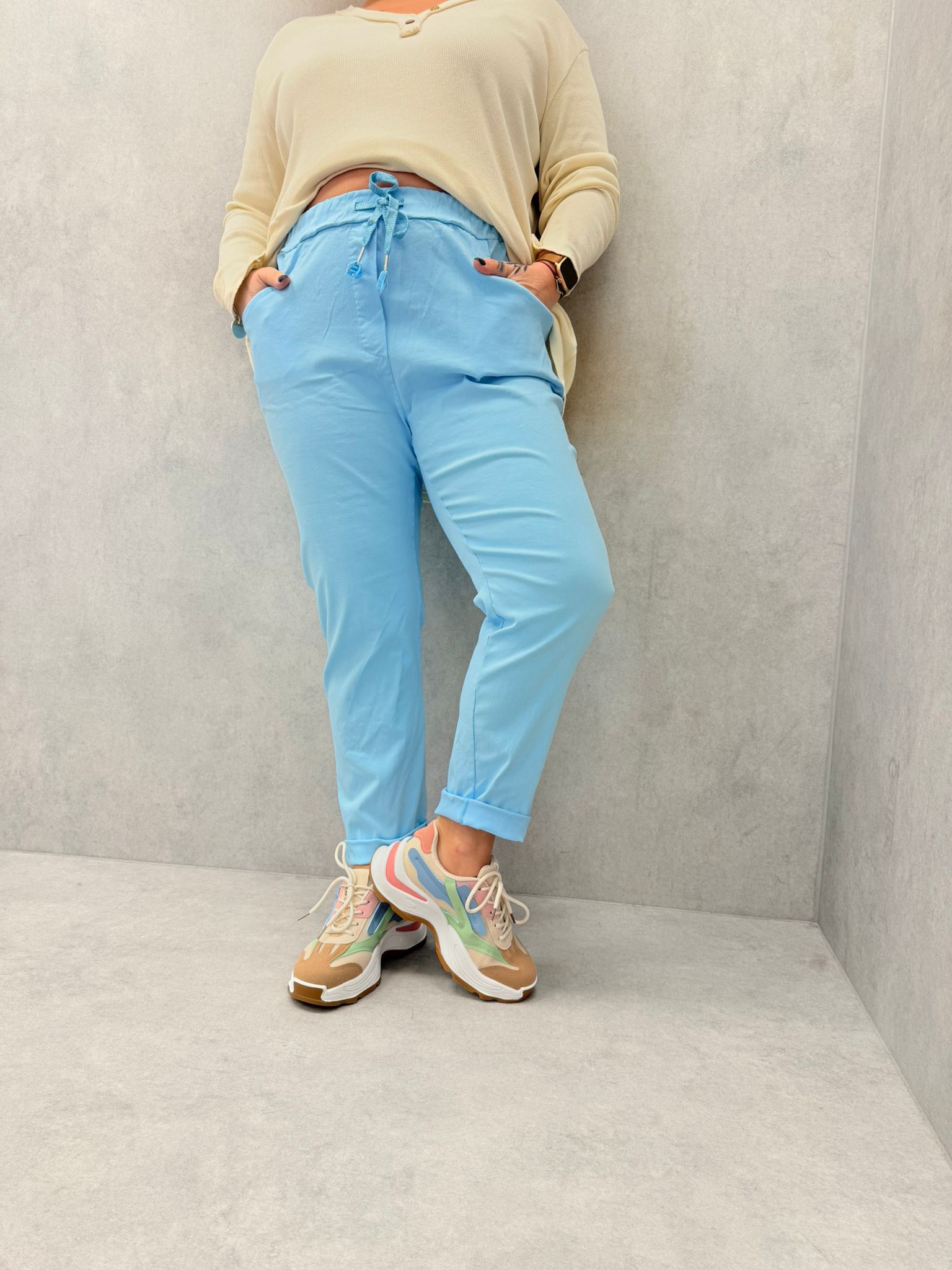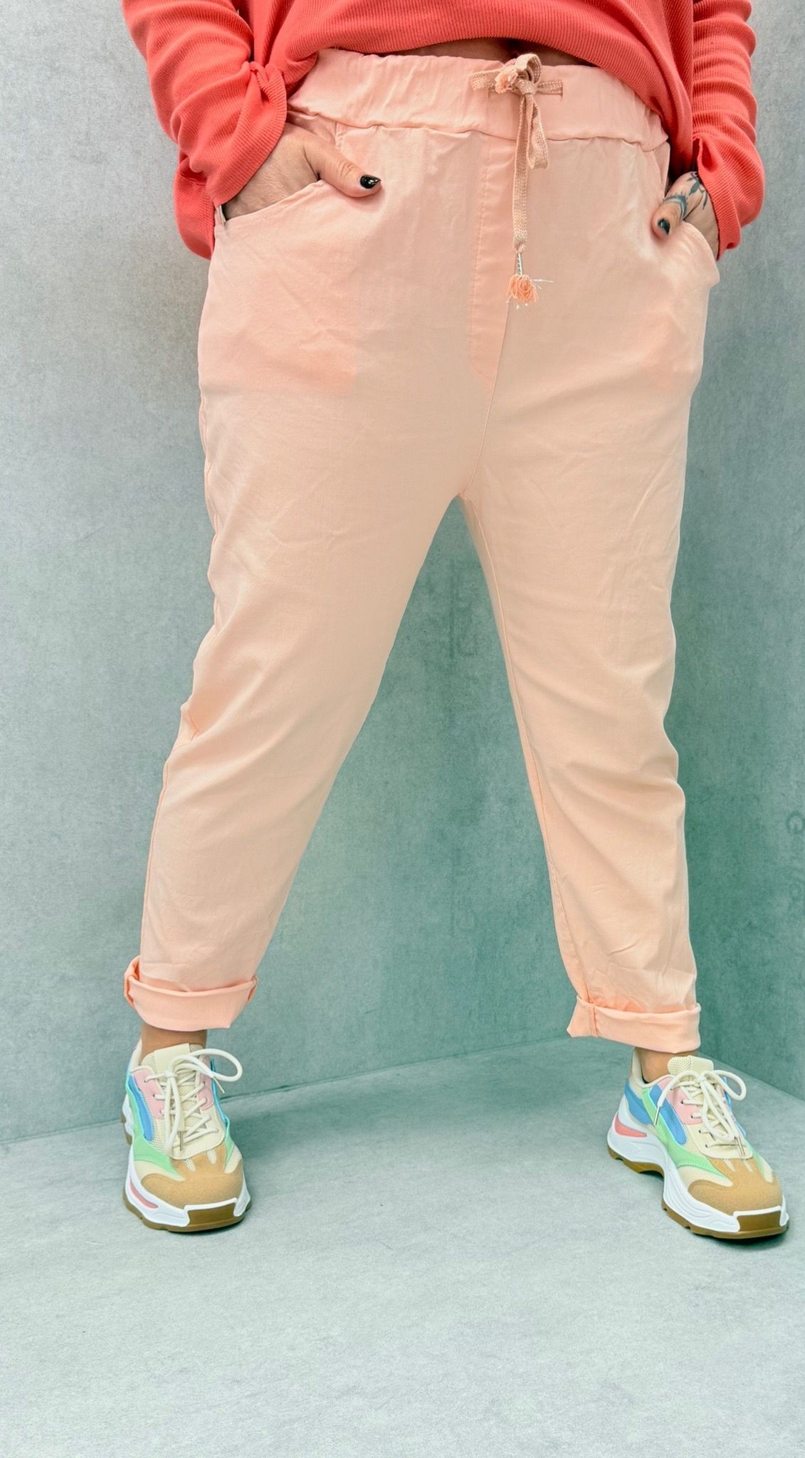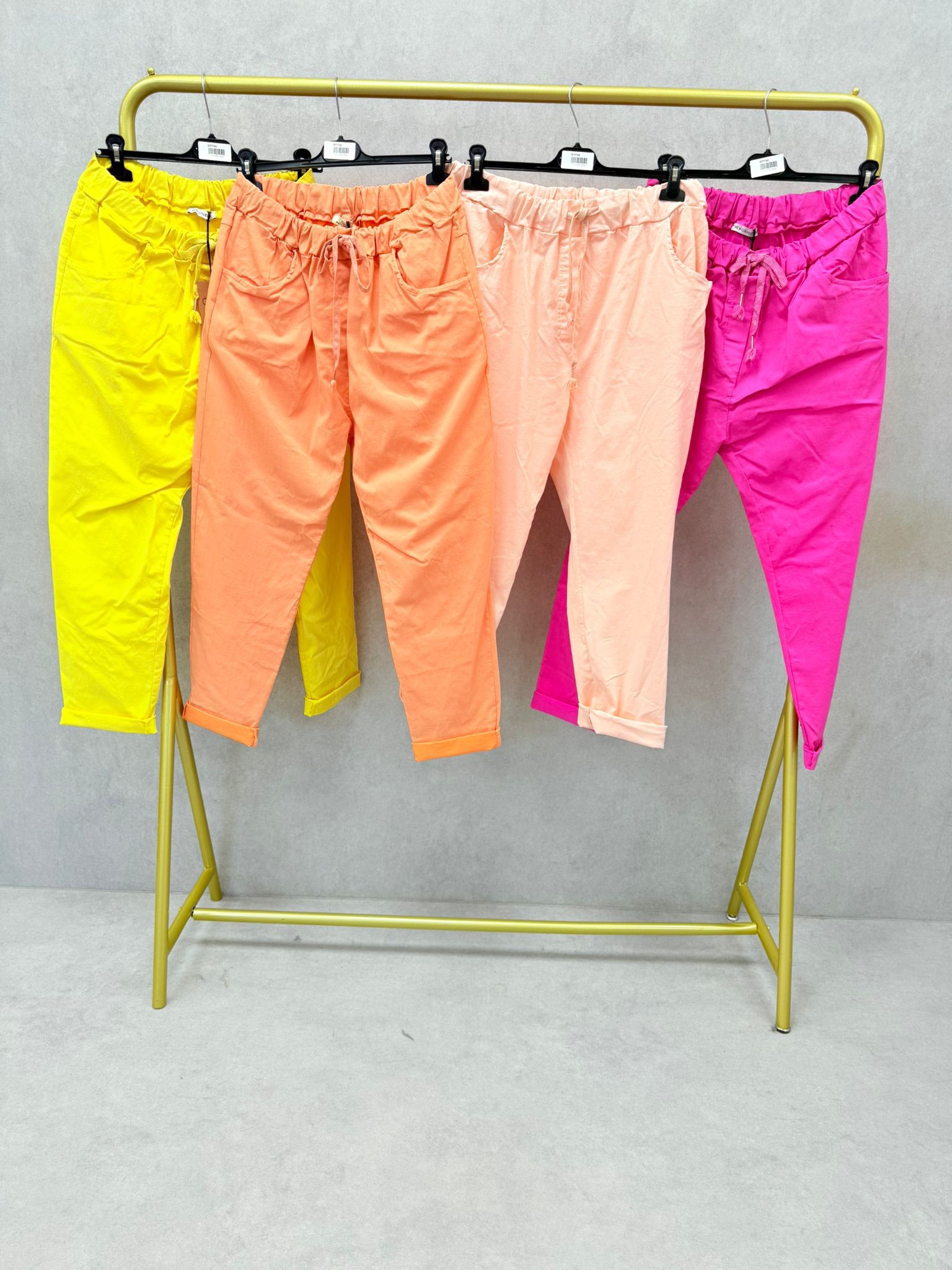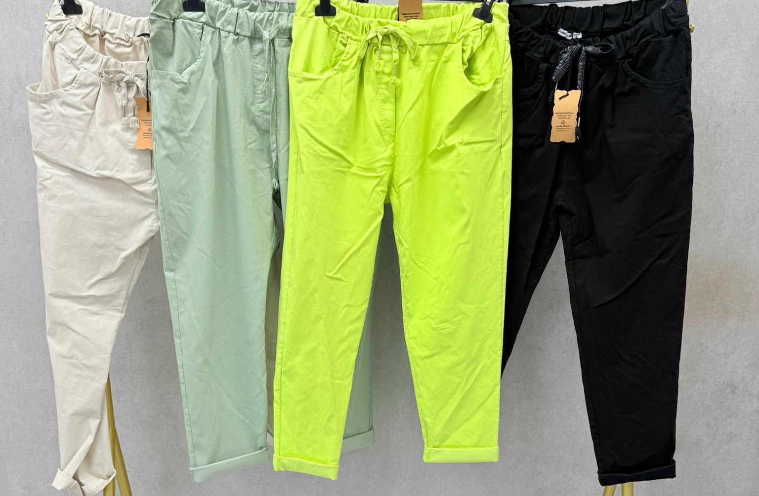 | Pantalon magique | Sable, Anis, Noir, Rose poudré, Fuchsia, Marine, Corail, Bleu ciel, Saumon |