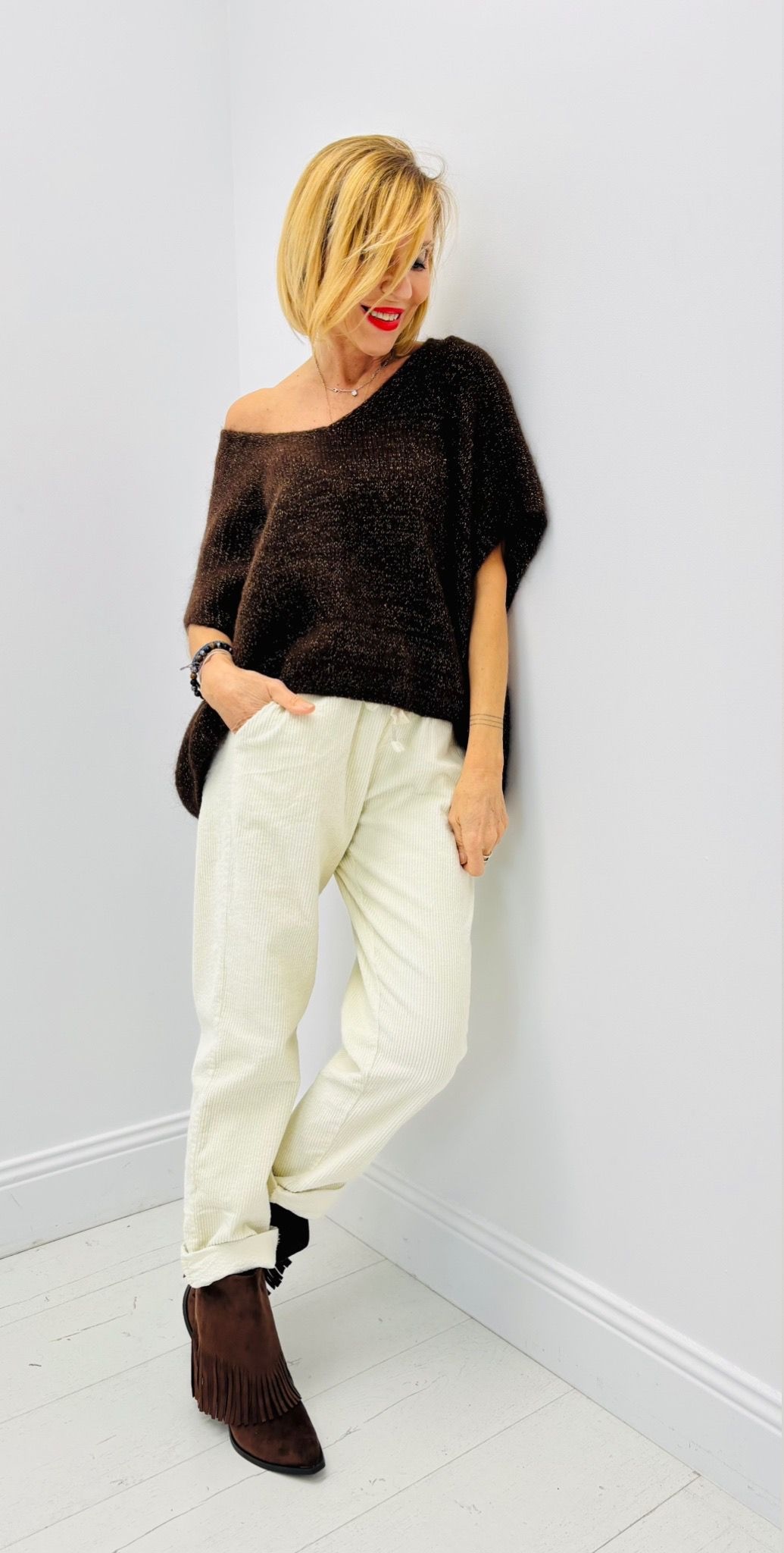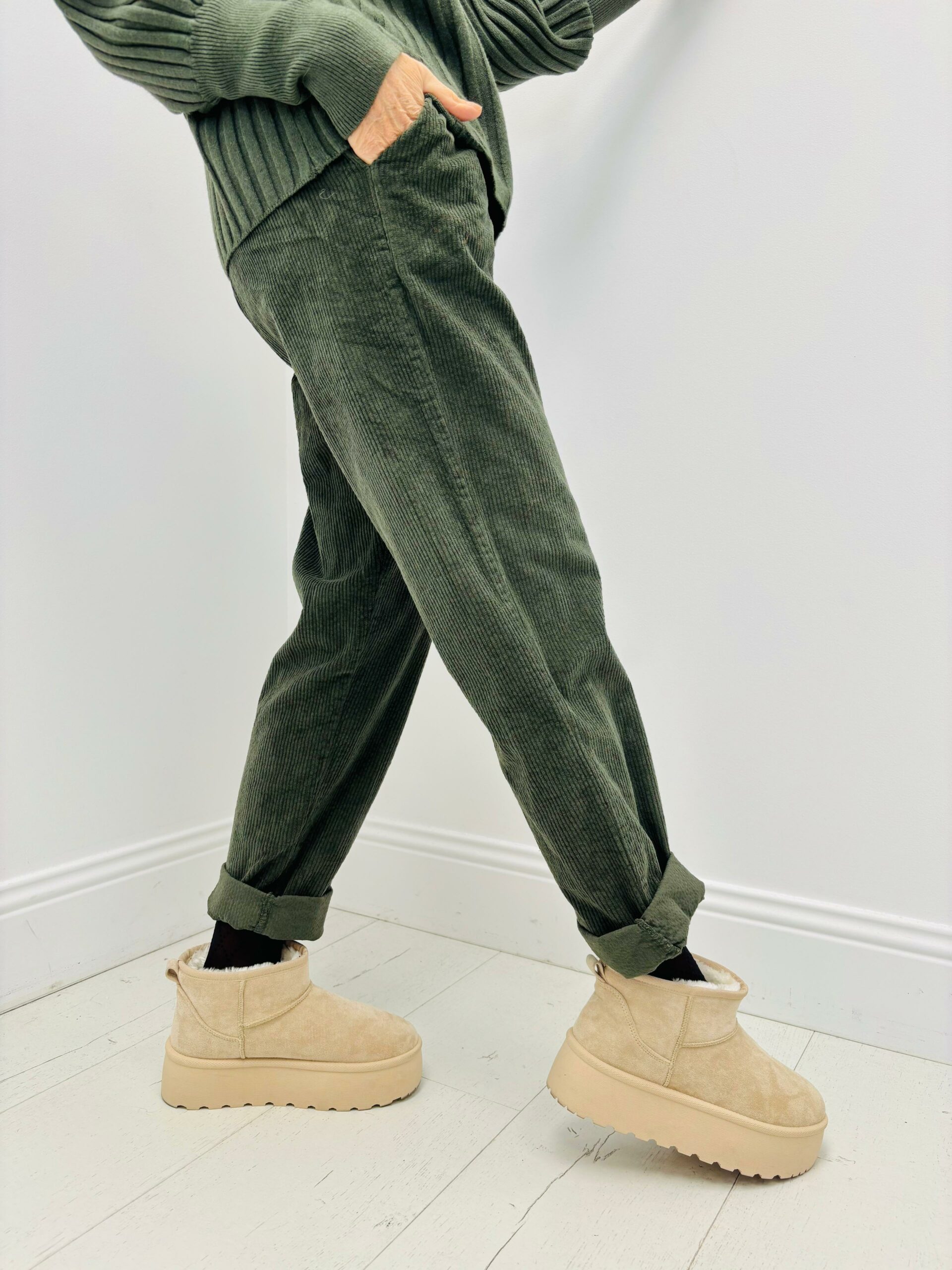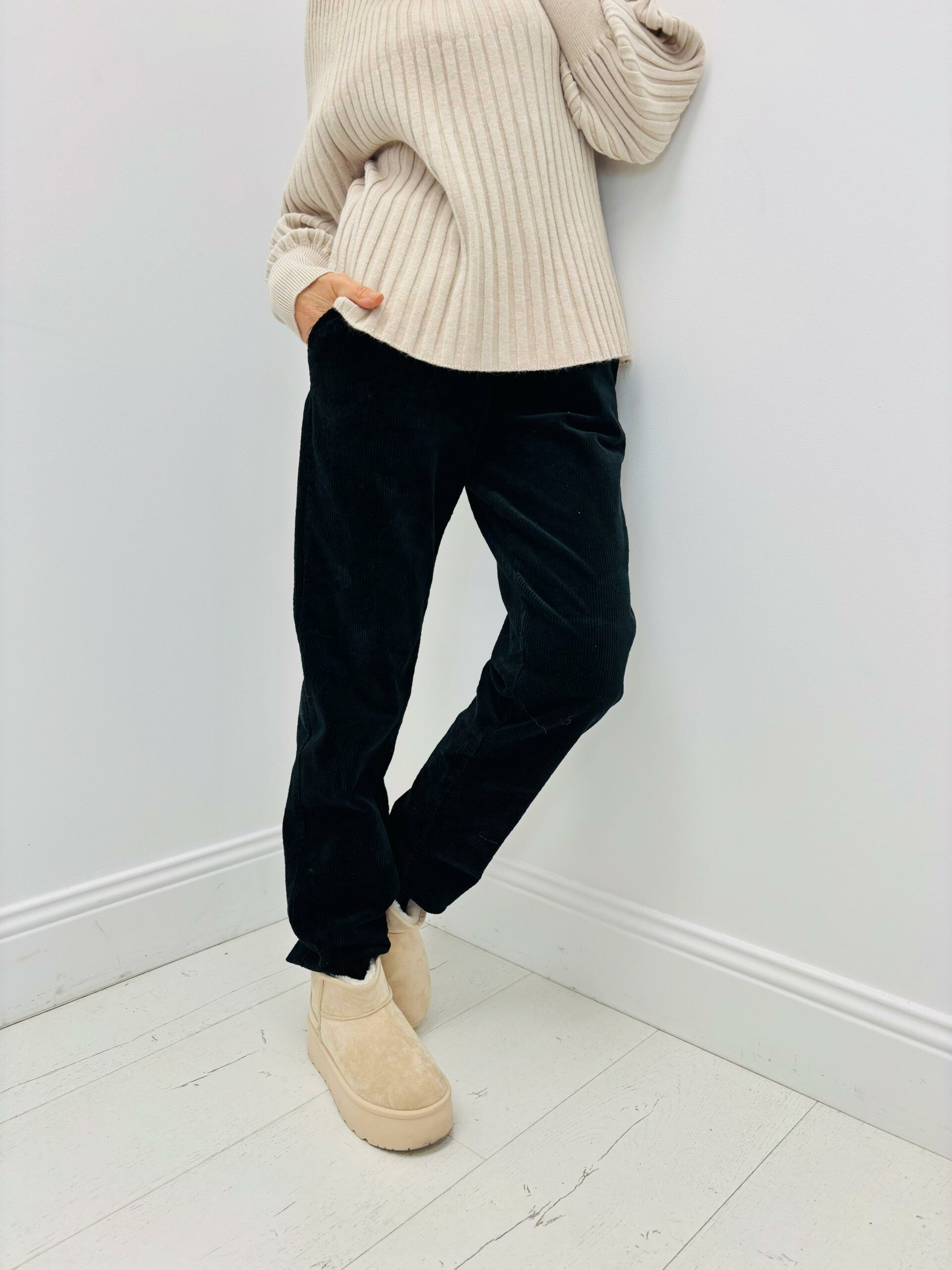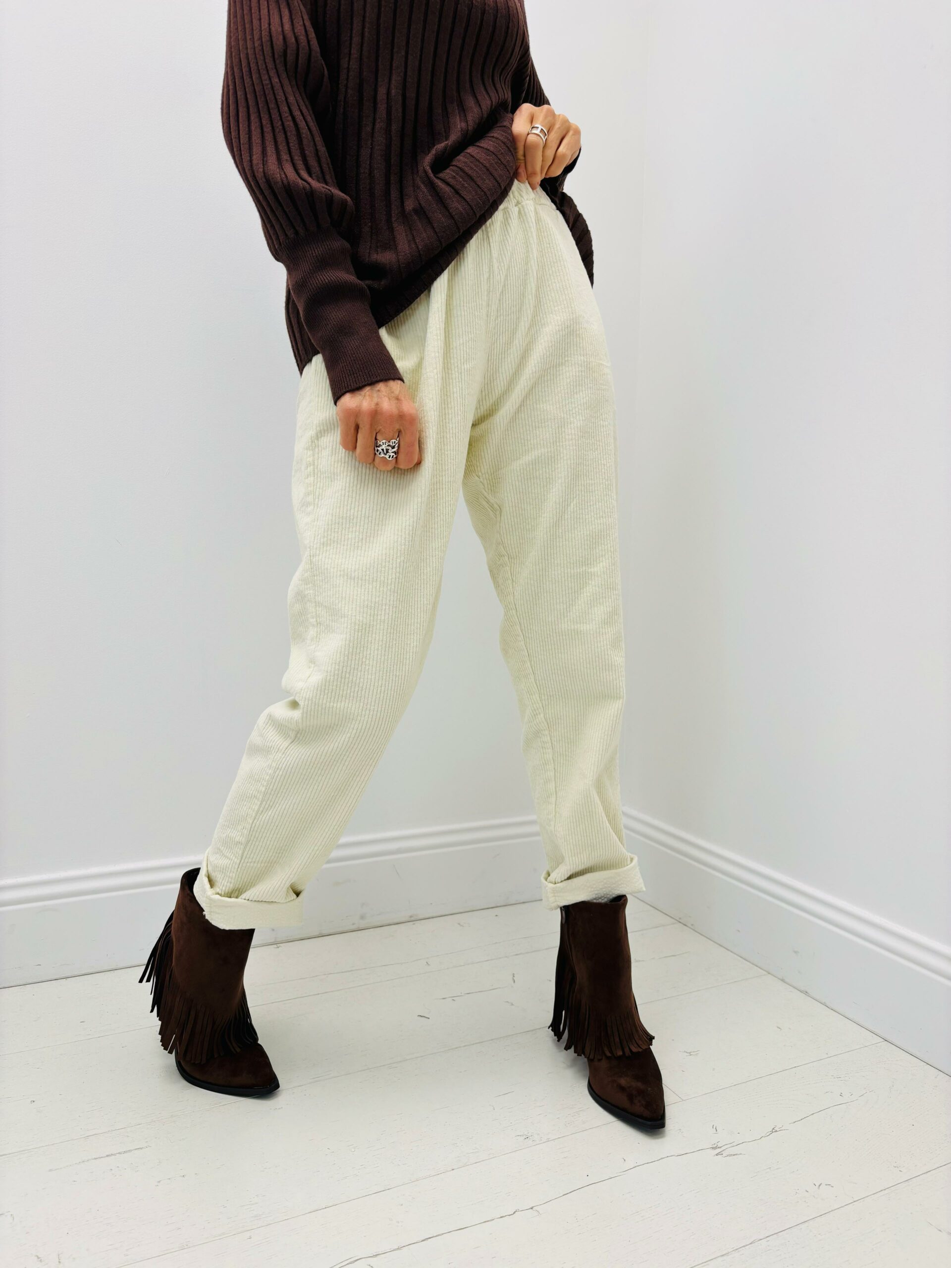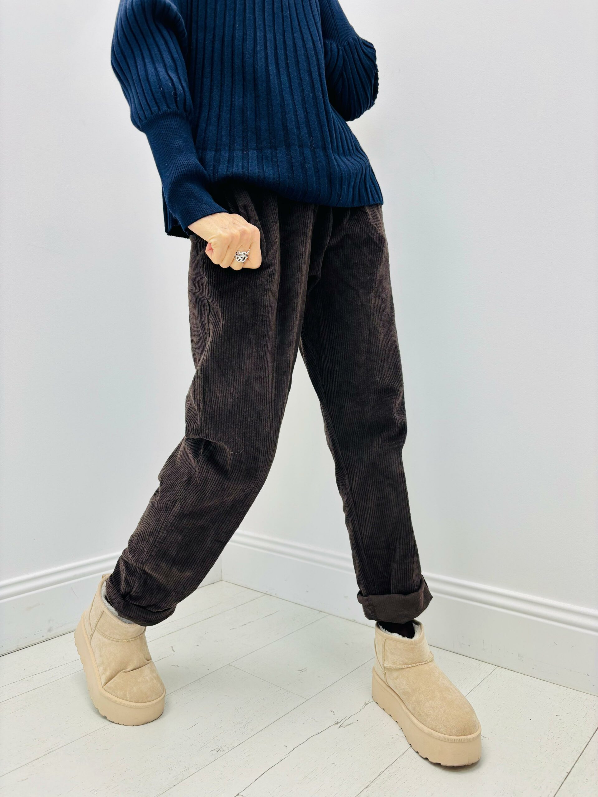 Pantalon velours, taille élastique, poches, cordon à serrer à la taille, très confortable
