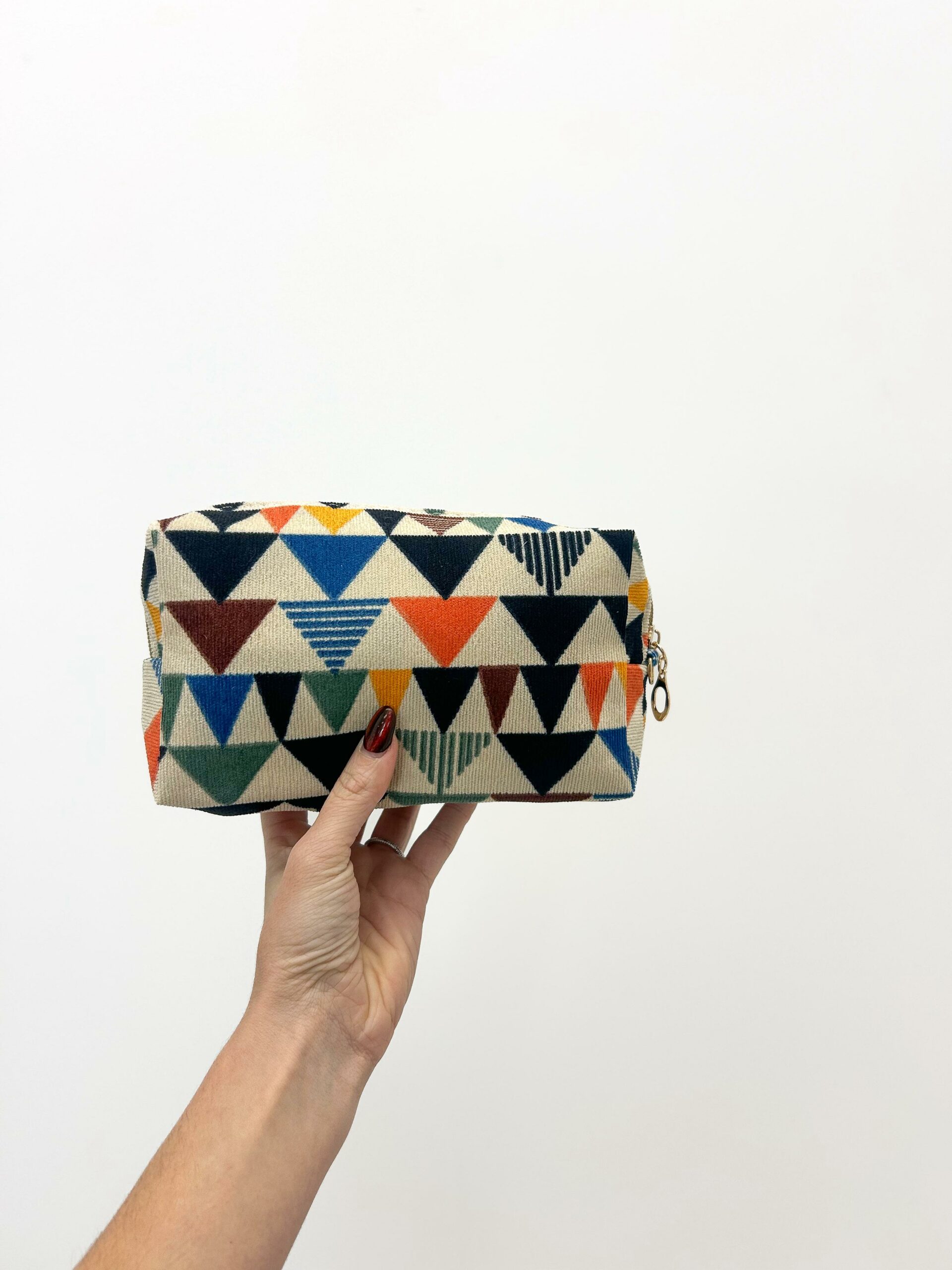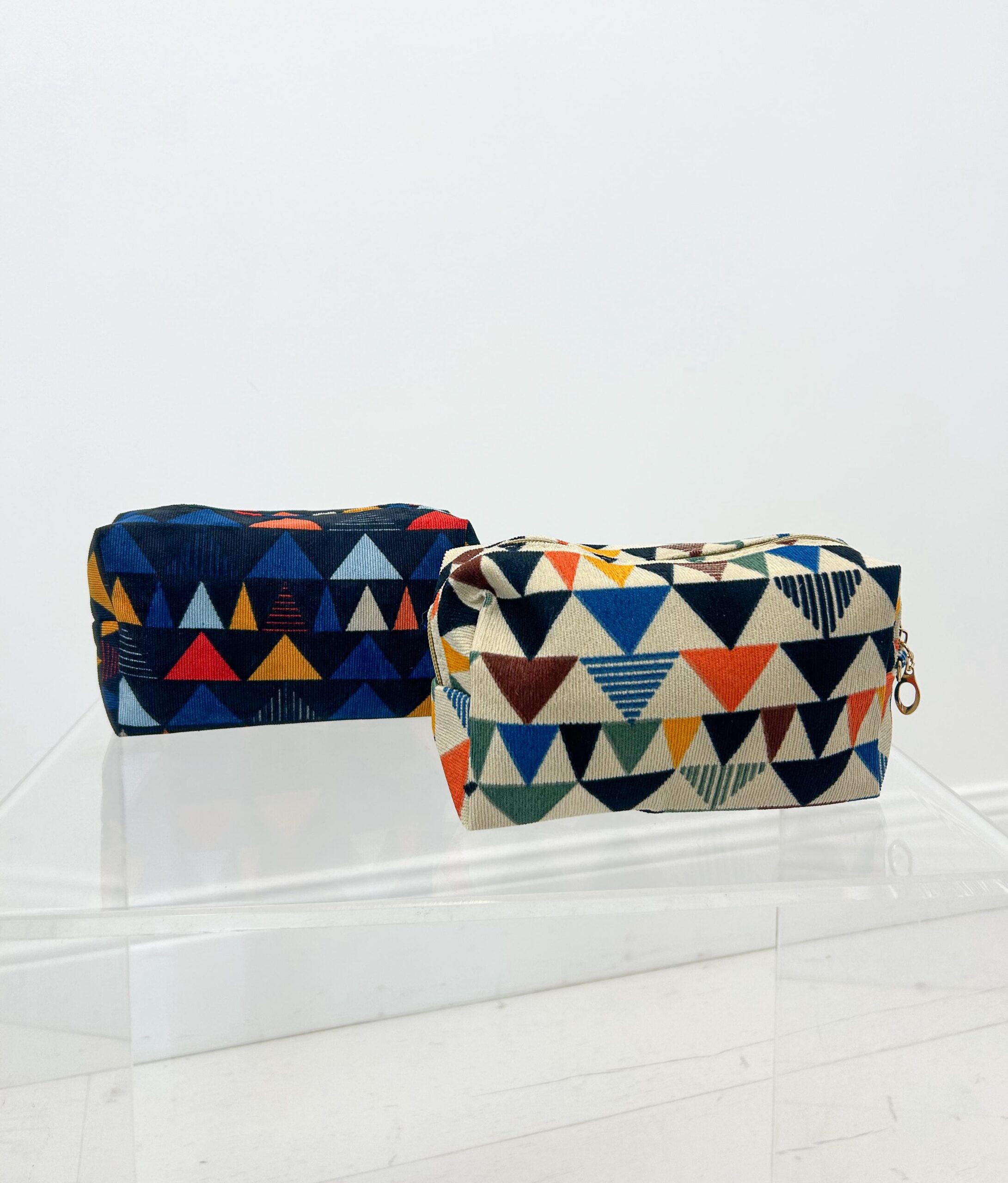 Pochette/ trousse aux motifs triangles, façon velours ras