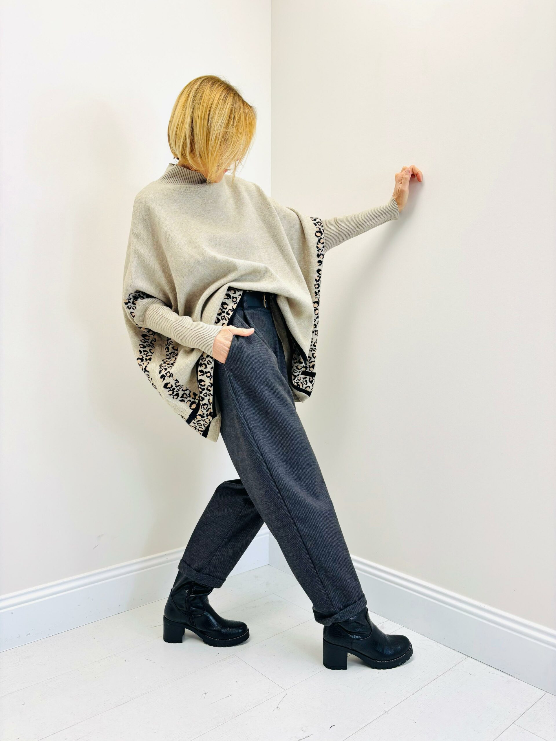 Poncho uni sable uniquement avec ses manches à motifs, col montant