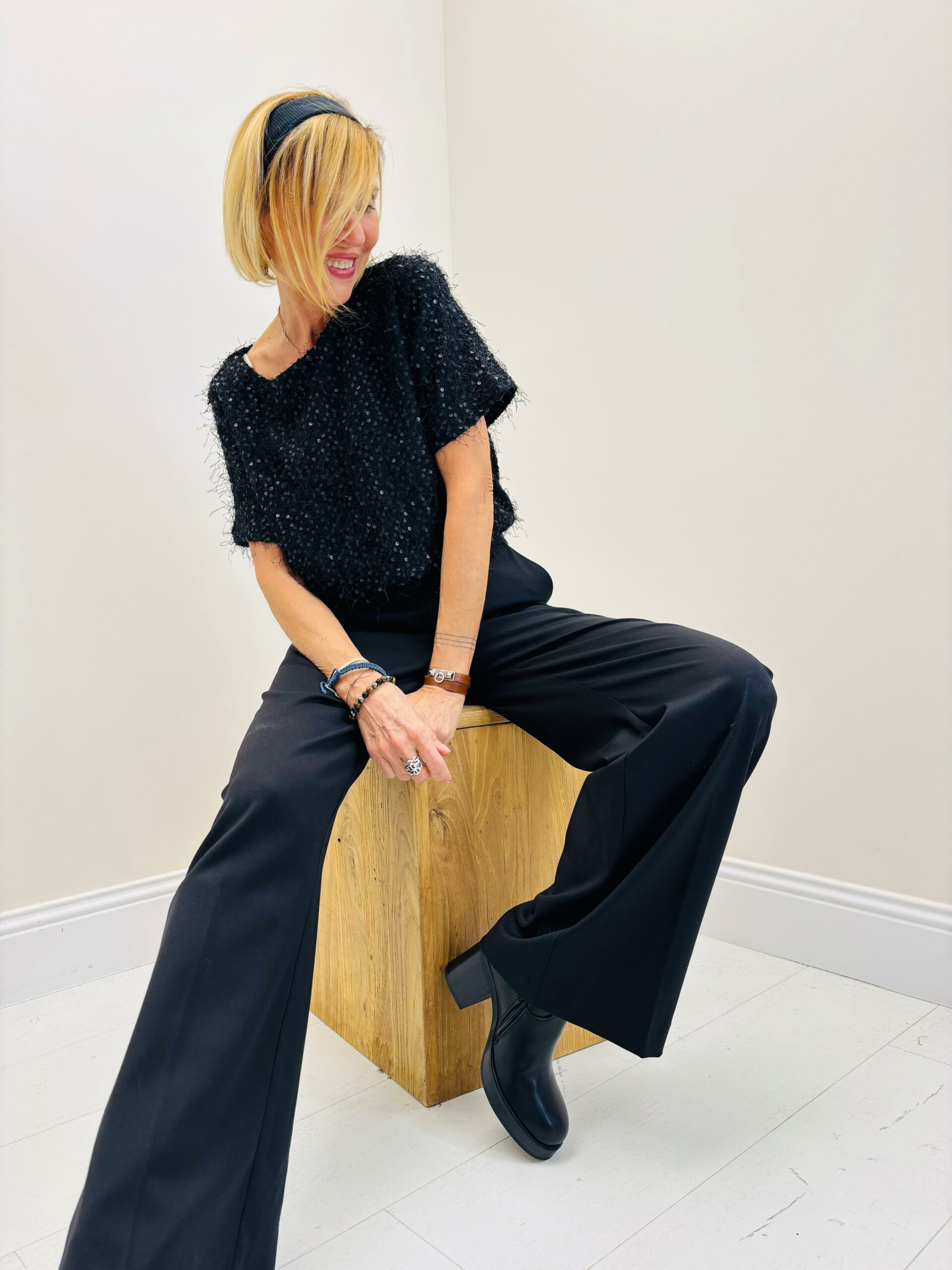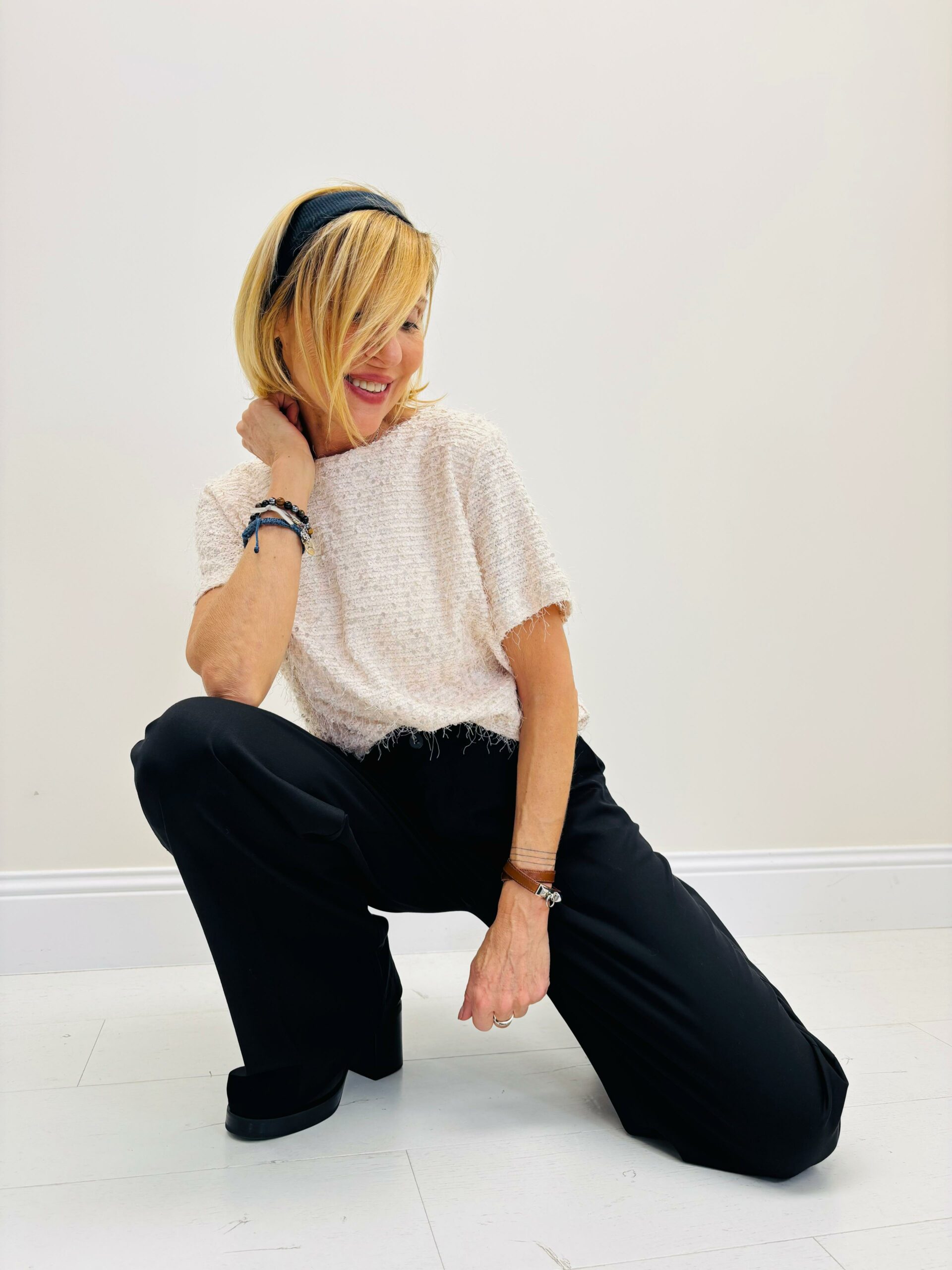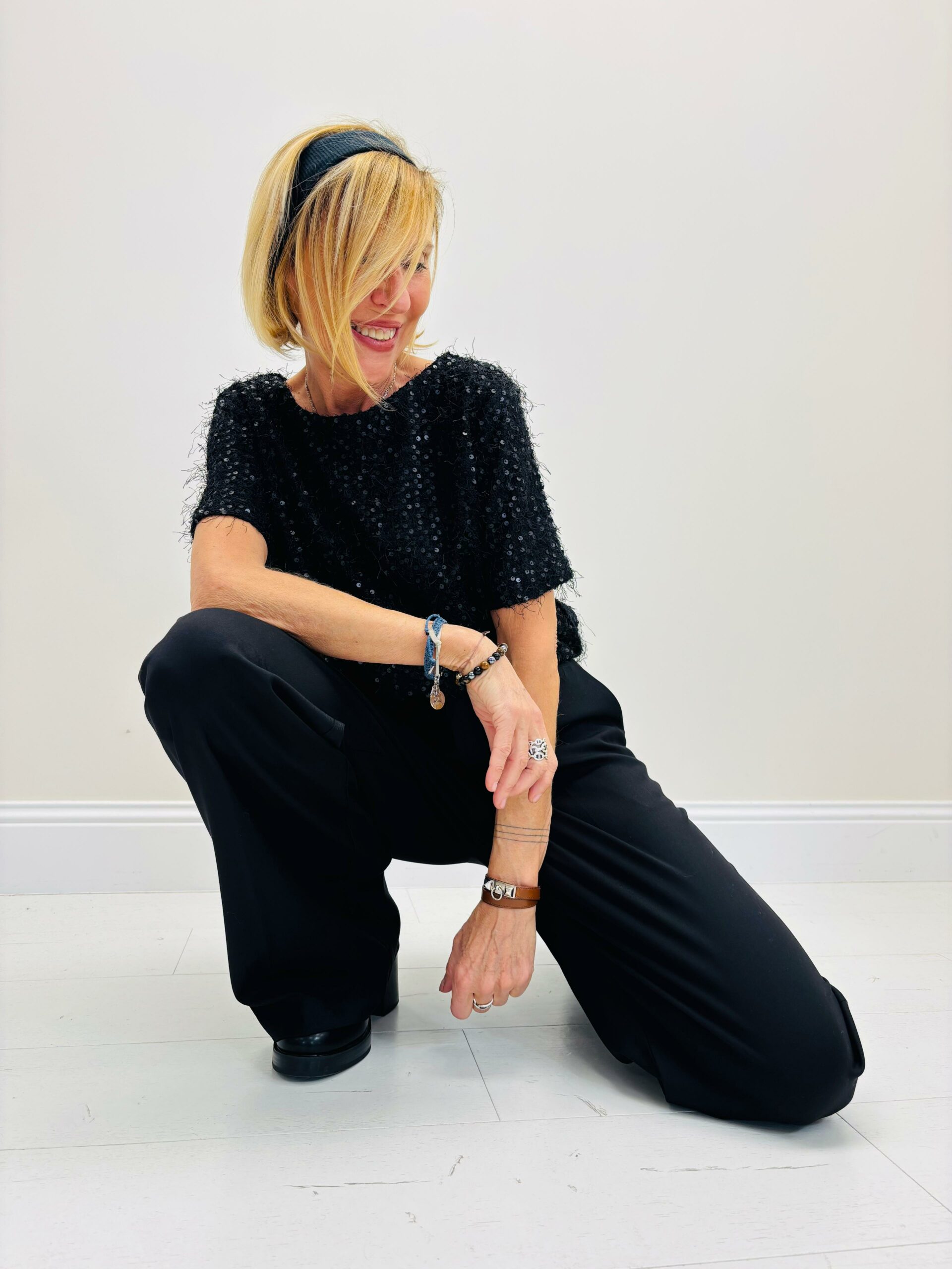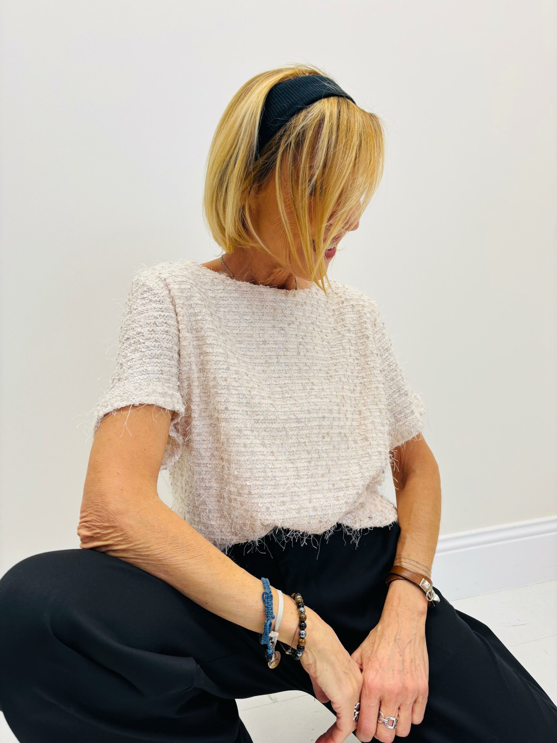 Haut à sequins, manches courtes, encolure ronde, doublé