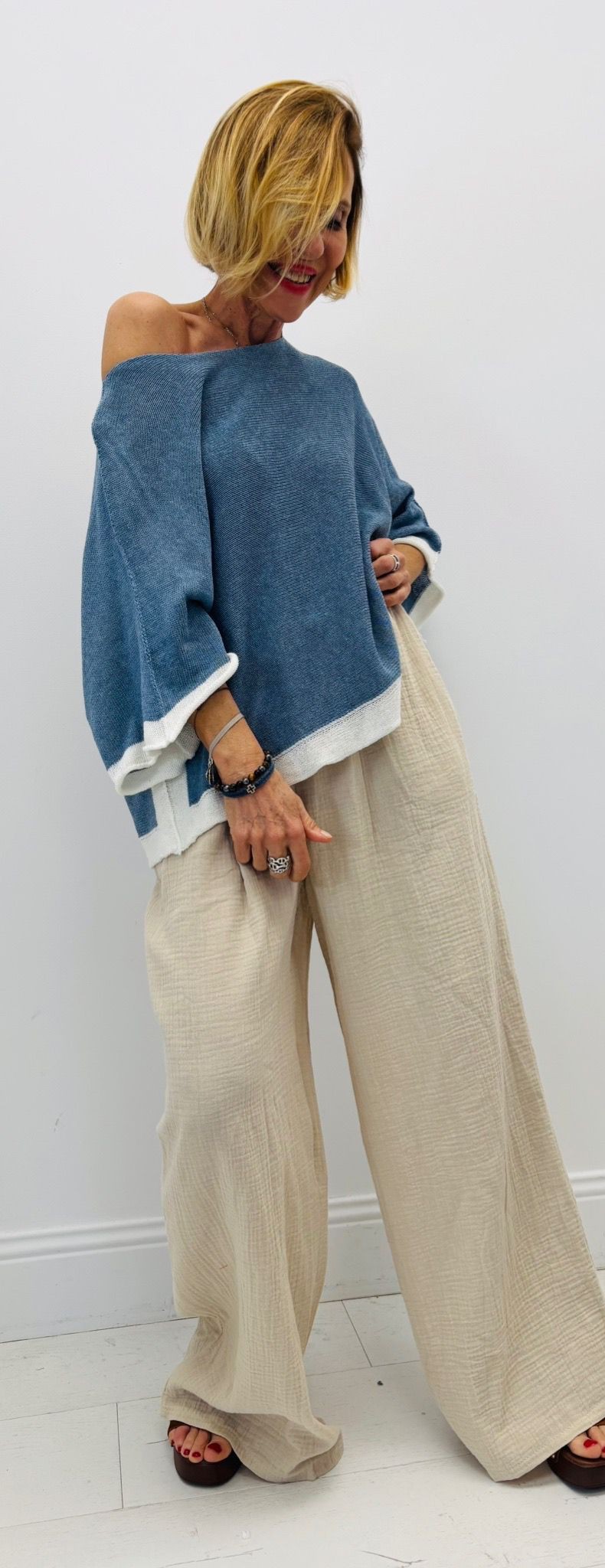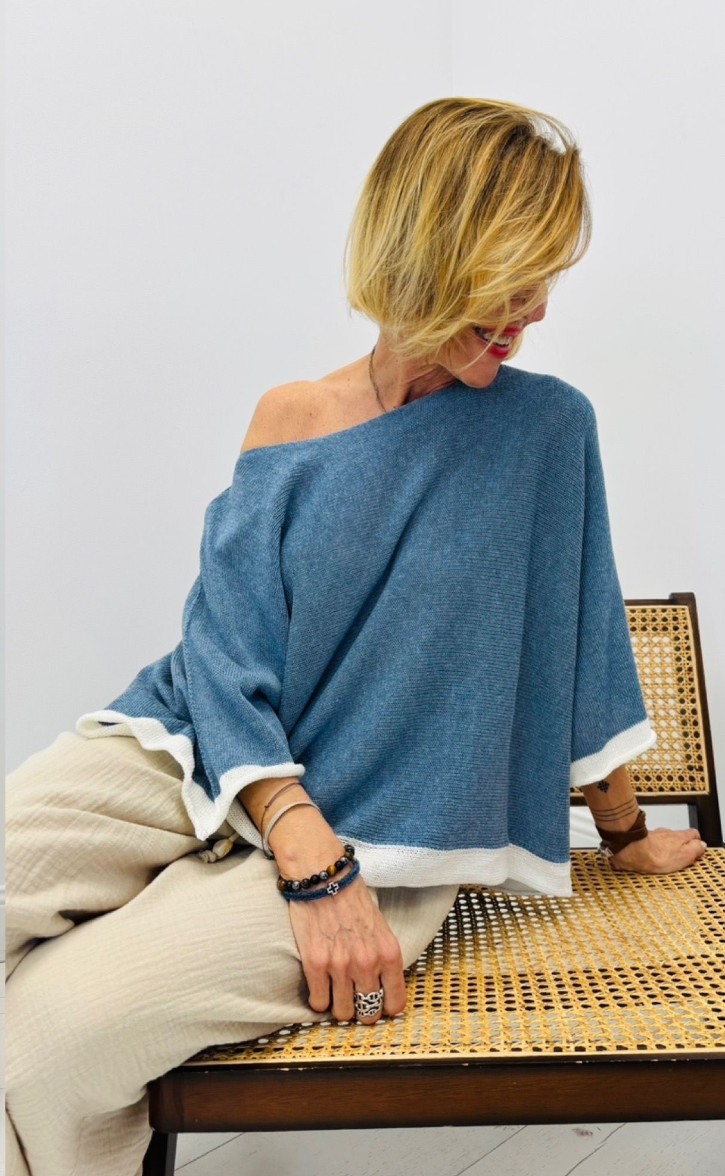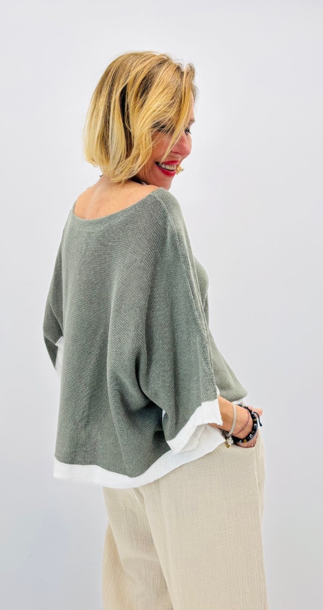 Pull coton, bi color, encolure ronde