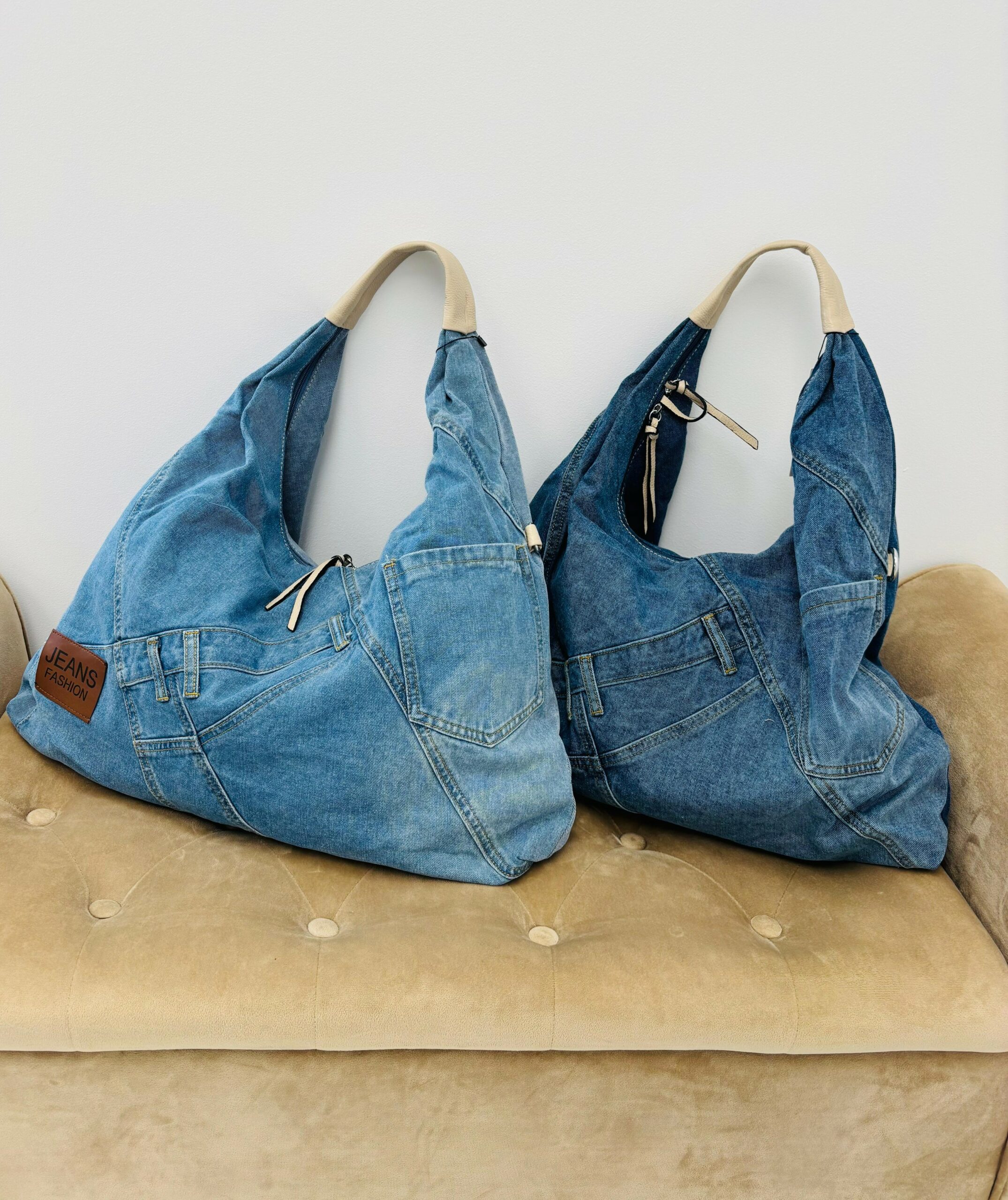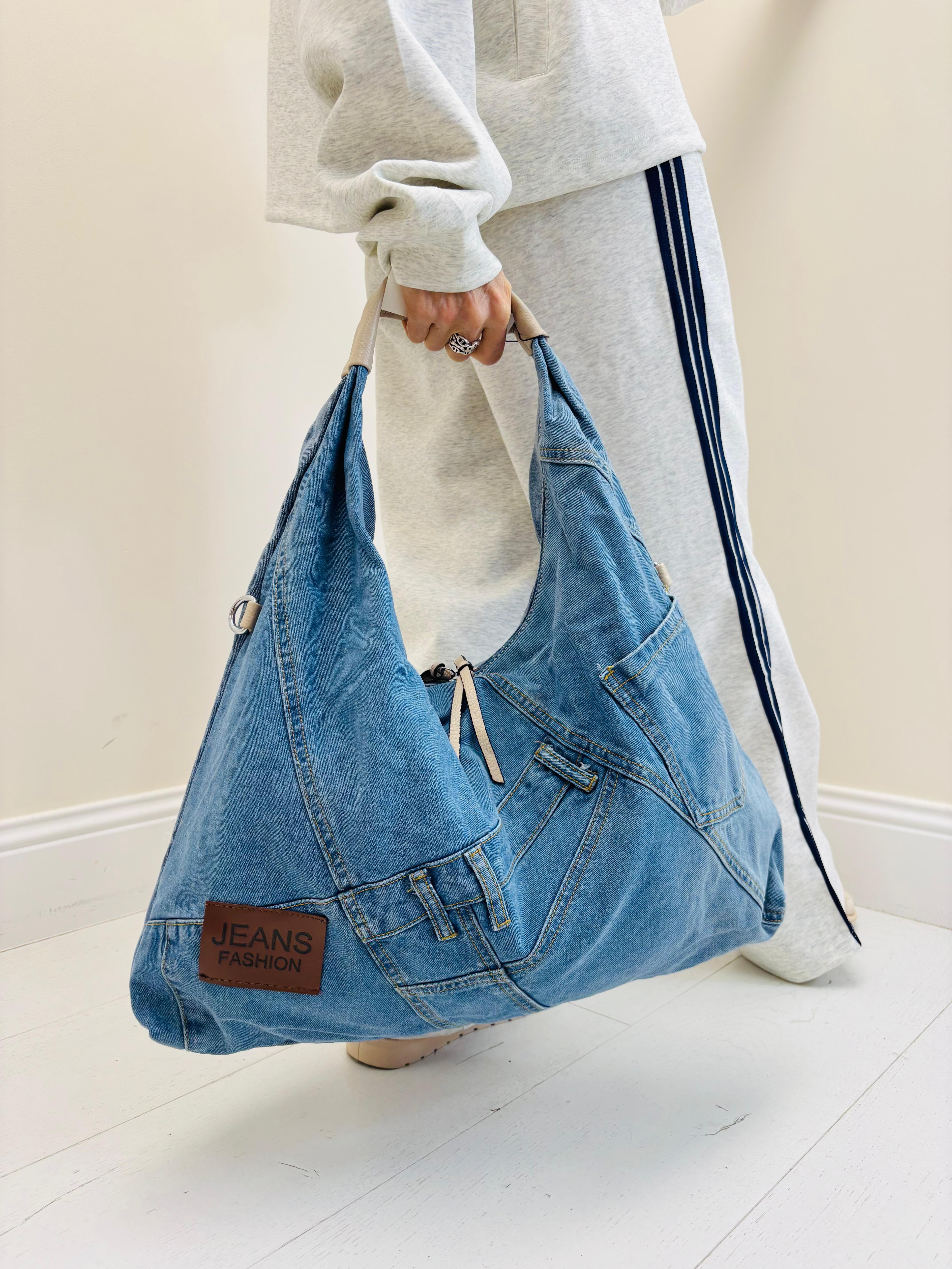 Sac en jeans avec bandoulière, anse, pochettes