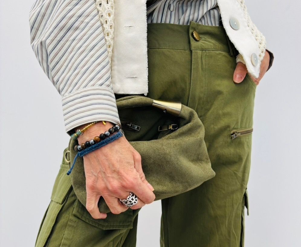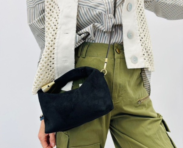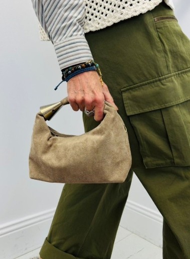 Petit sac en nubuck, poignet vendu avec sa chaîne, petites pochettes à l’intérieur