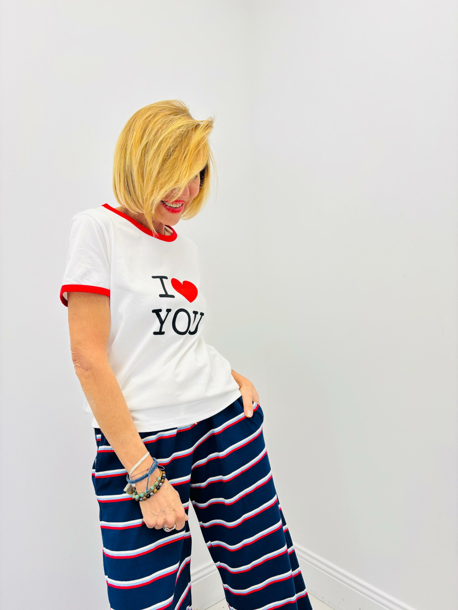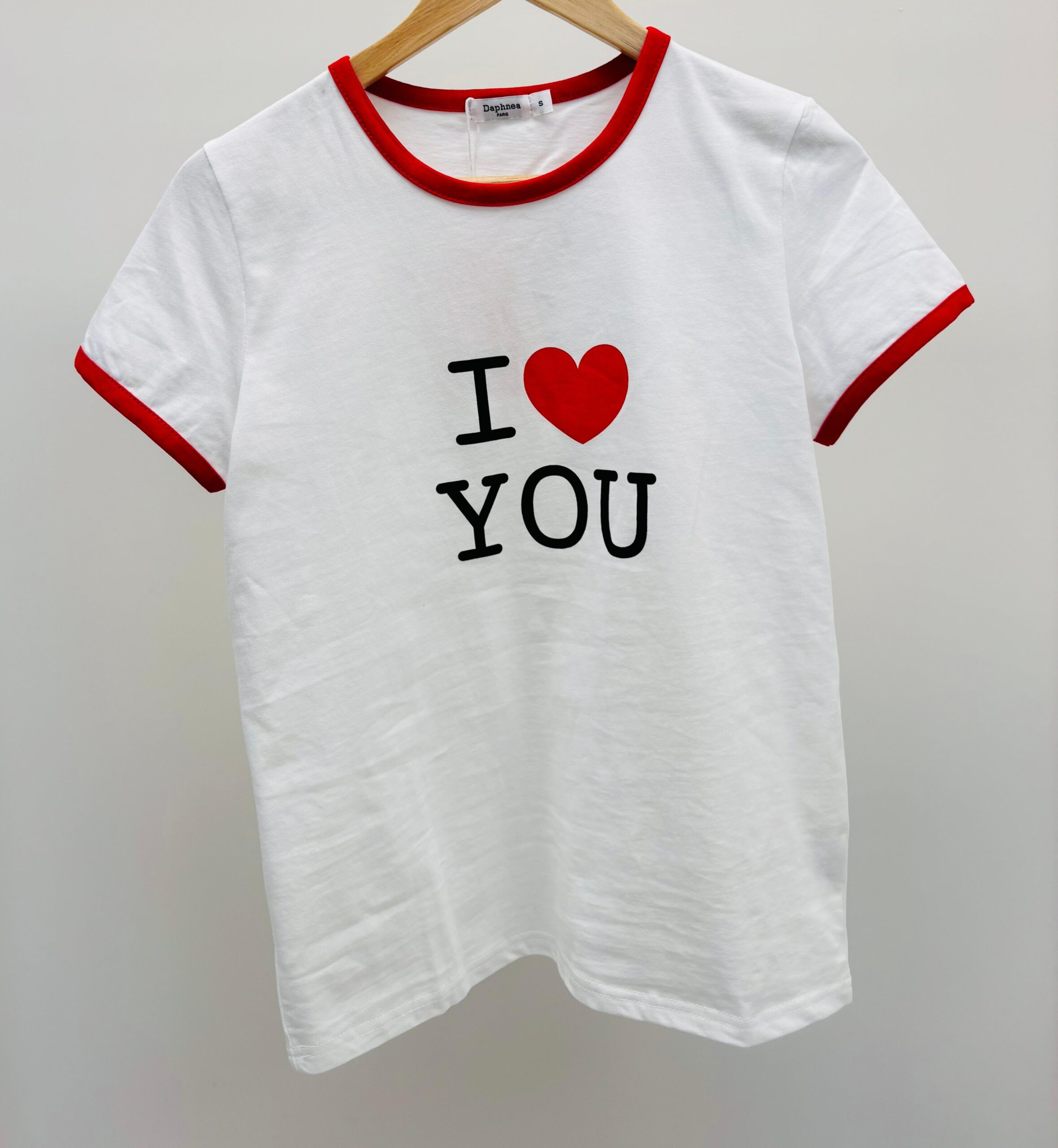 Tshirt blanc « I love you », encolure ronde et rouge, manches courtes