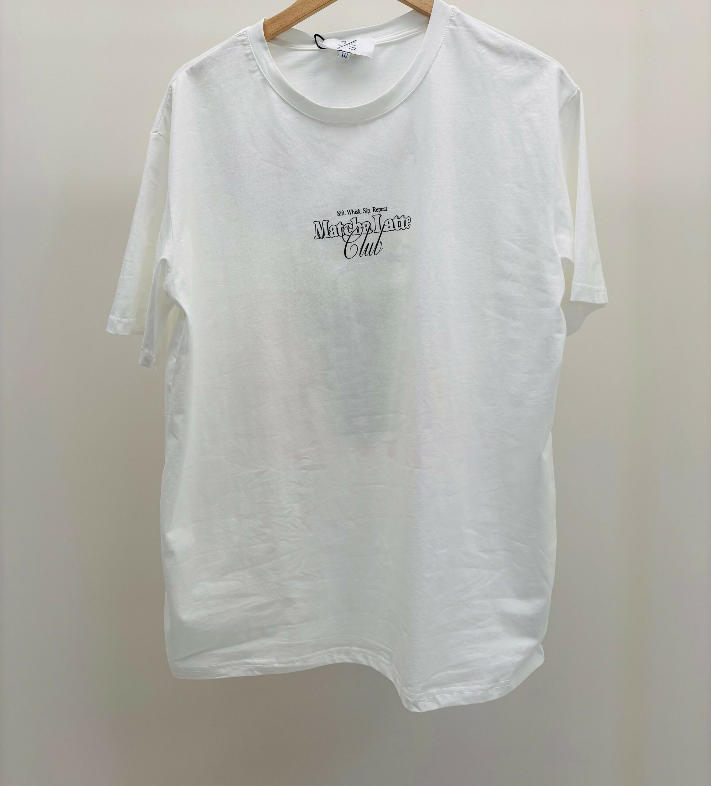 Tshirt blanc, avec au dos « matcha », encolure ronde, manches courtes