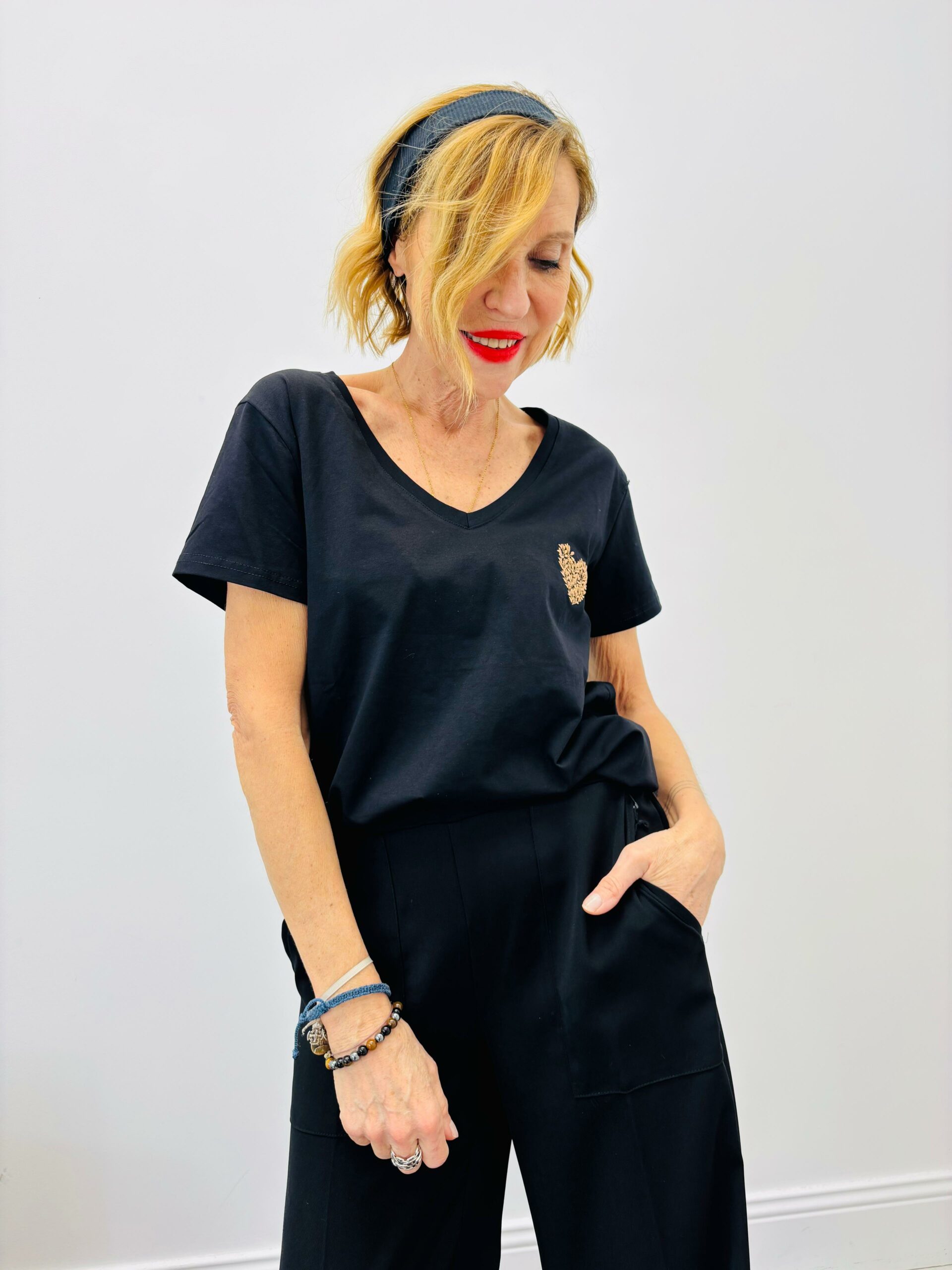 Tshirt noir avec cœur, encolure en V