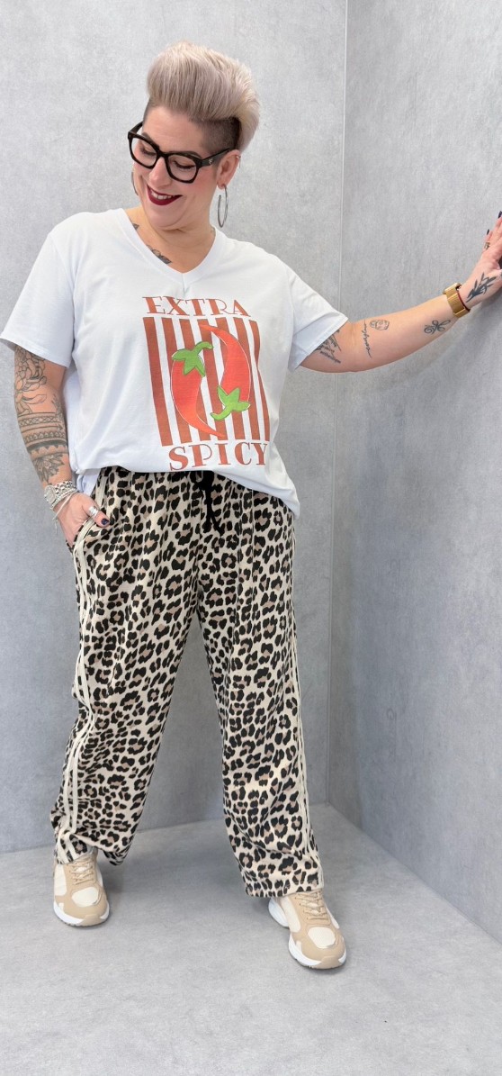 Tshirt blanc avec piment, encolure en V, manches courtes