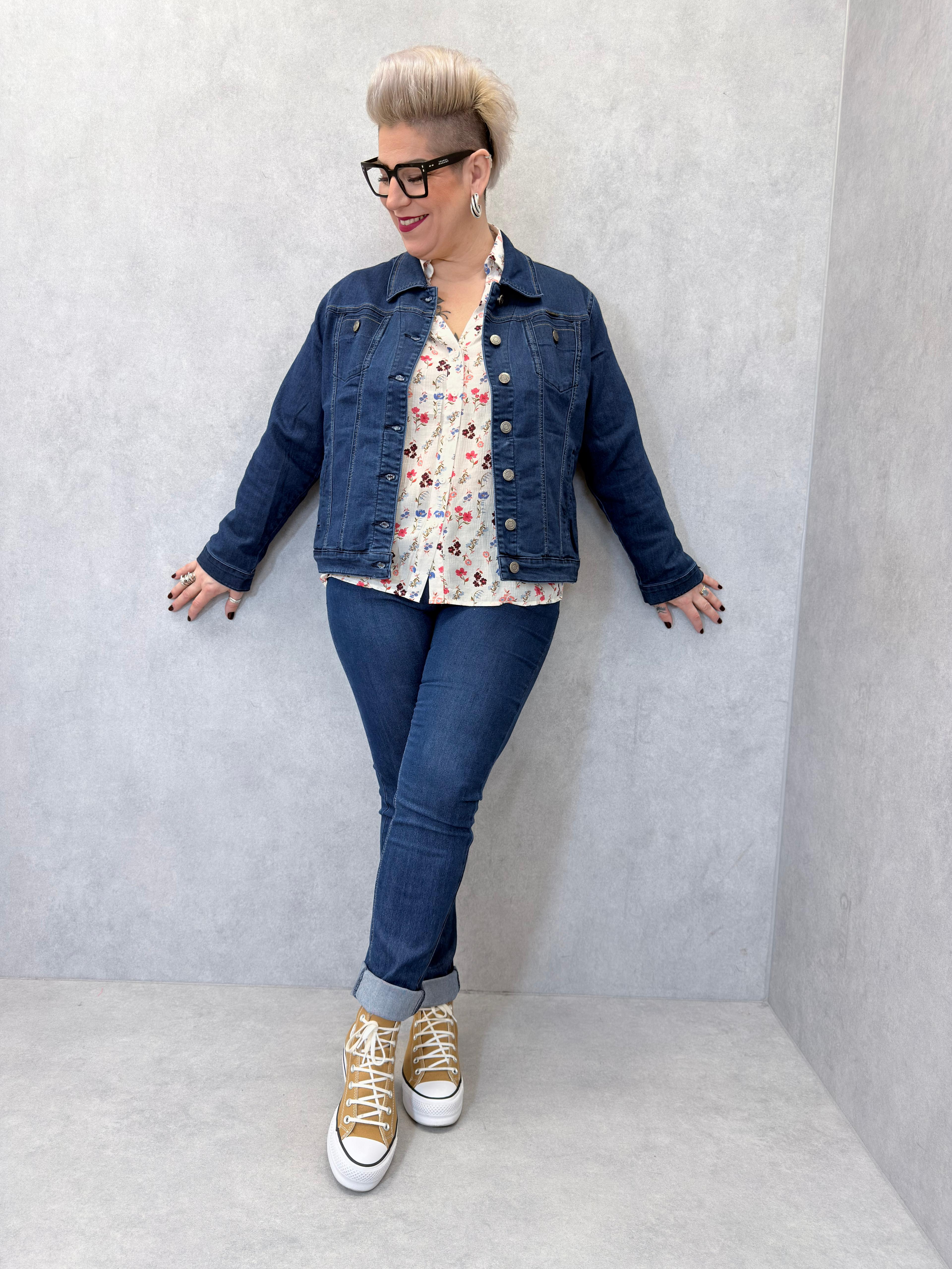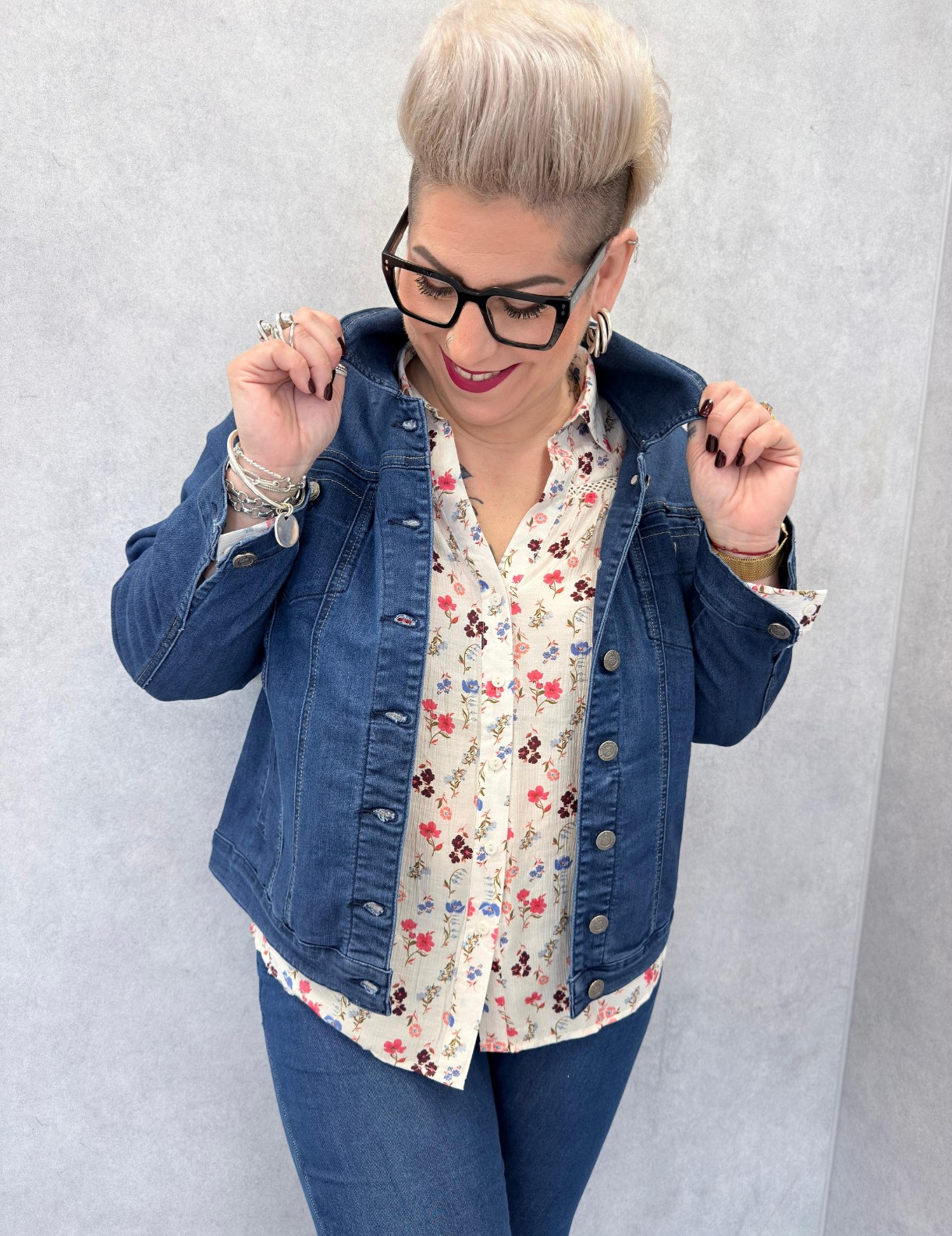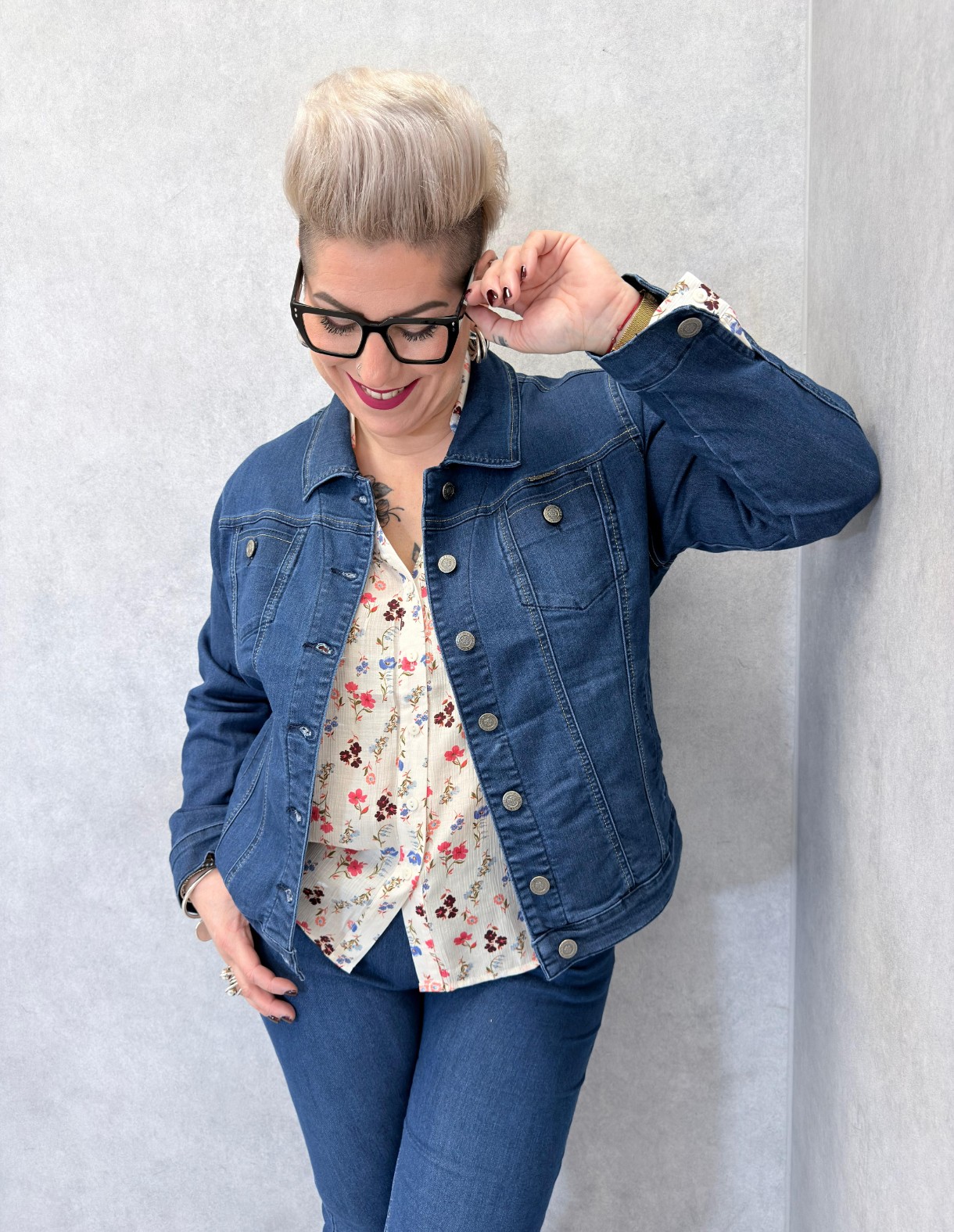 Veste en jeans boutonnée, 2 poches, jeans souple