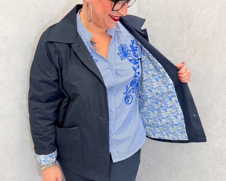 Veste marine, boutonnée, poches, bien finie